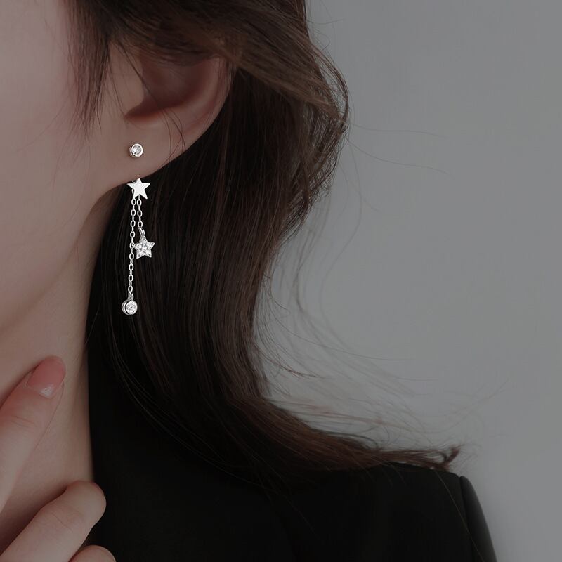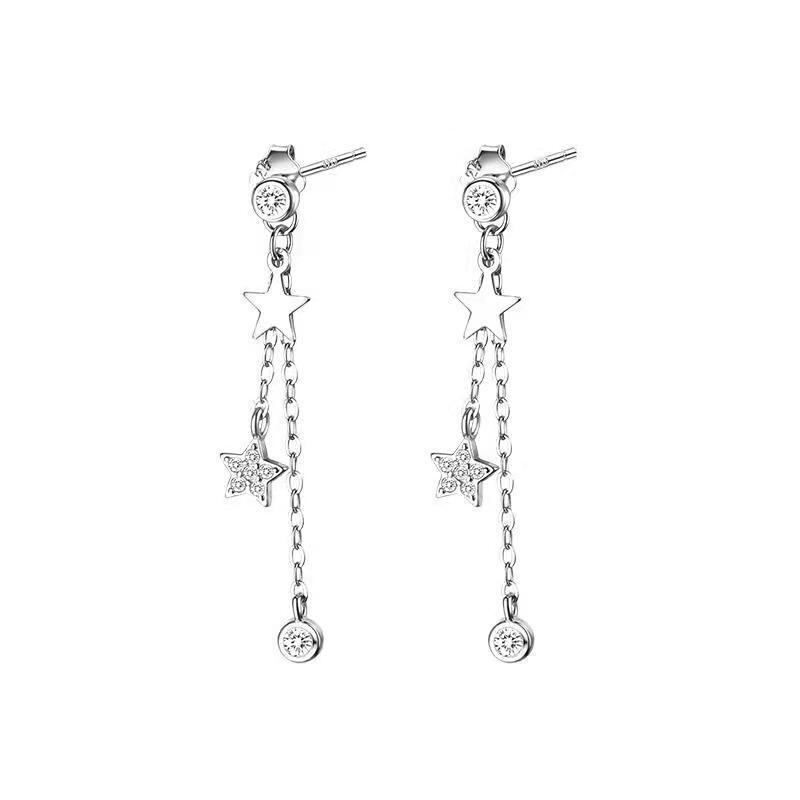 送料無料 ANENJERYシルバーカラー銅ジルコンスターTelチェーンイヤリング女性絶妙なスキニーイヤリング 銀 アクセサリー AE165578831470399