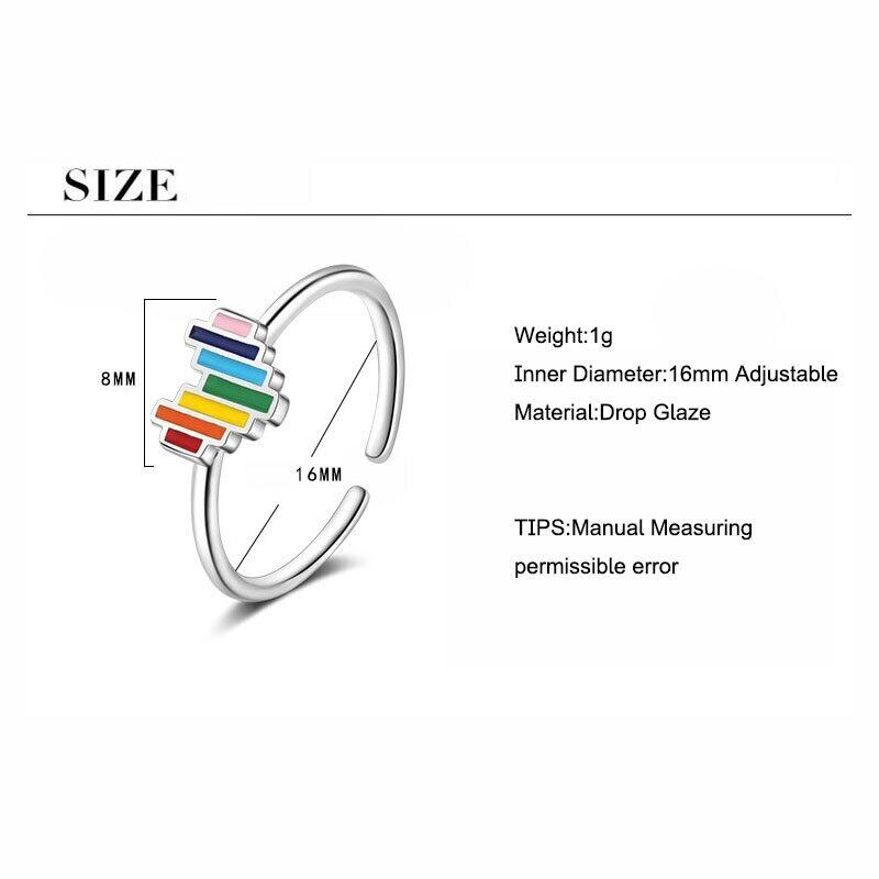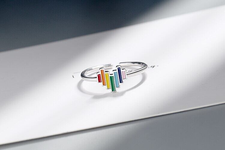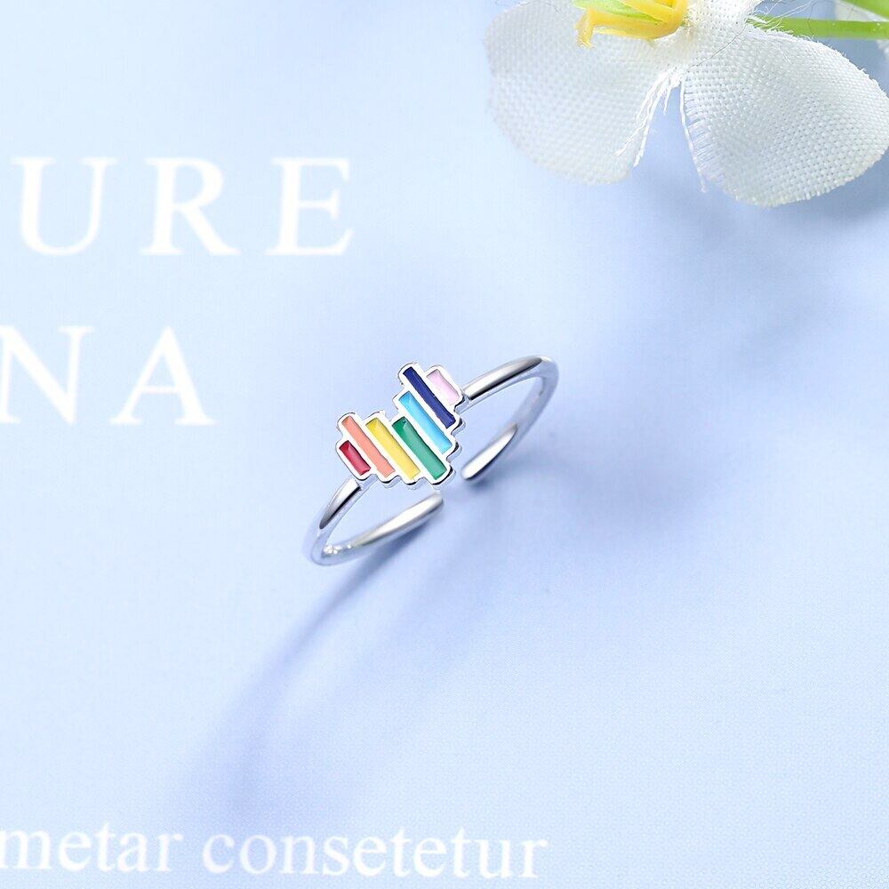 送料無料 ANENJERYシルバーカラーレインボーハートオープンリングオープンサイズフィンガーリングガールズギフト発送S-R575 指輪 銀 アクセサリー AE16553020083684