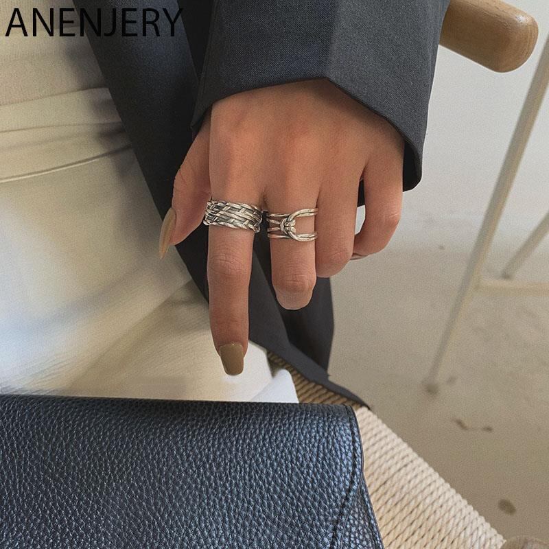 送料無料 ANENJERYシルバーカラージュエリー手作り織りクロスワインディングノットタイシルバーリング女性オープンリングギフトS-R651 指輪 銀 アクセサリー AE165557040824919