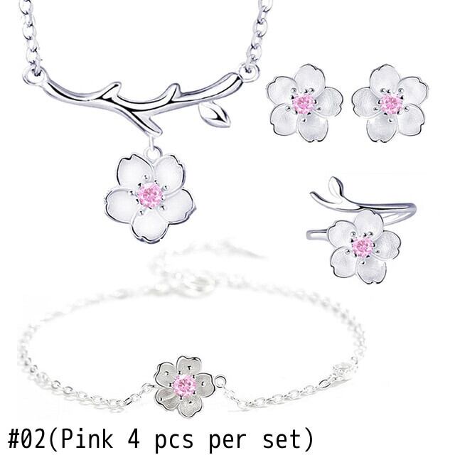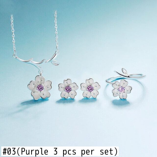 送料無料 ANENJERYロマンチックなシルバーカラーの桜の花のジュエリーセットペンダントかわいいブライダルウェディングセット 大人ガーリー スウィート キュート カジュアル フラワーデザイン 銀 アクセサリー AE165514894754443