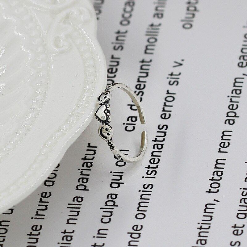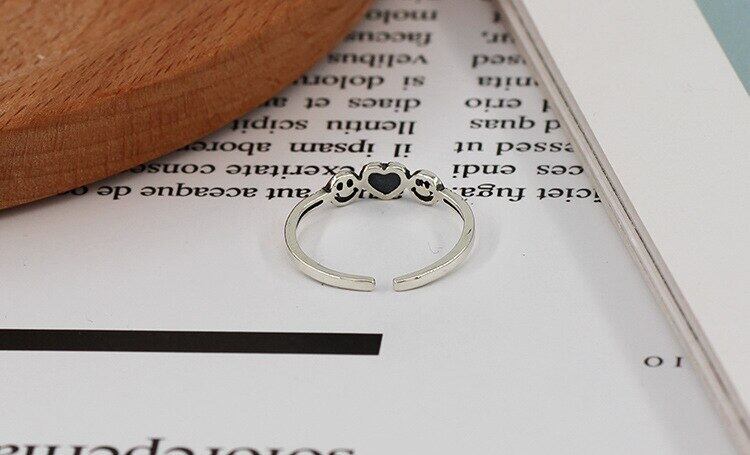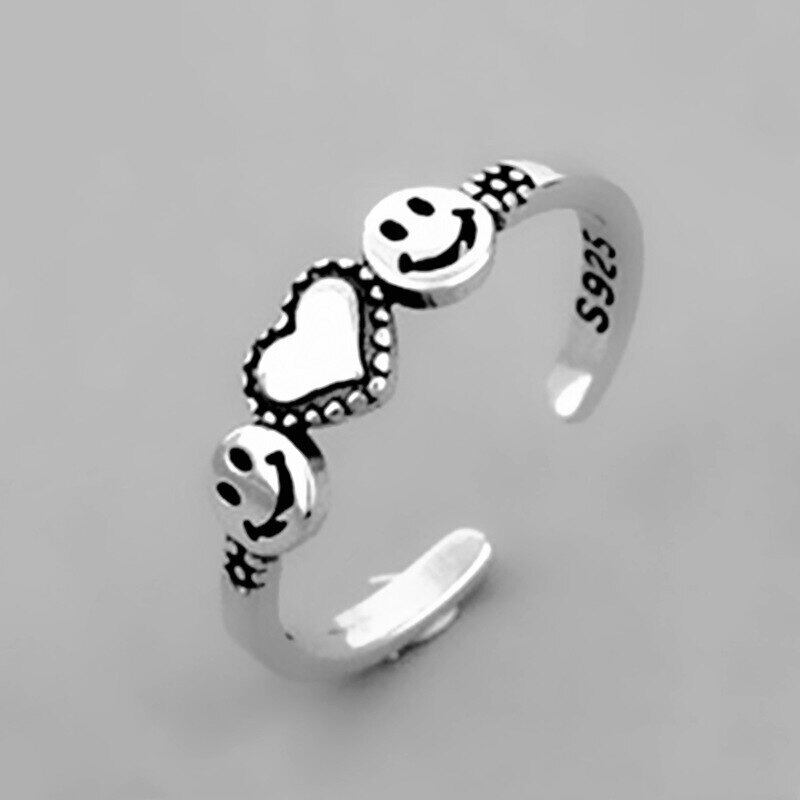 送料無料 ANENJERYシルバーカラー笑顔タイシルバーリングシンプル可憐なラブハートオープンリング女性パーティージュエリーギフトS-R605 指輪 銀 アクセサリー AE165582257378977