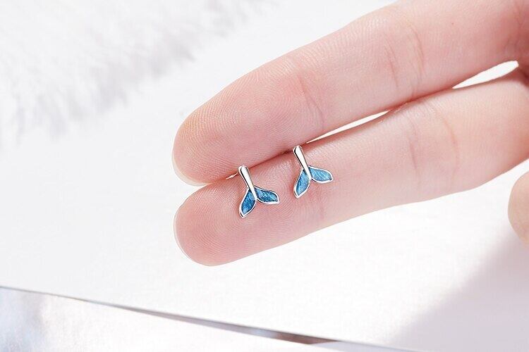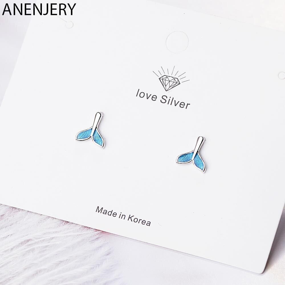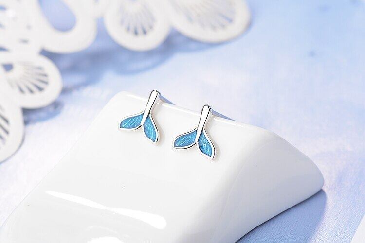 送料無料 ANENJERYシルバーカラークリエイティブブルーフィッシュテールピアス釉薬マーメイドフィッシュテールピアスギフトガールフレンドS-E840 イヤリング リング 指輪 銀 アクセサリー AE165594315891885