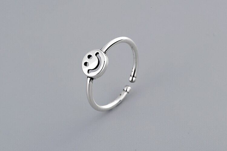 送料無料 ANENJERYシルバーカラー中空笑顔顔オープンサイズリング女性ガールパーティージュエリーギフト発送S-R623 指輪 銀 アクセサリー AE165579342914577