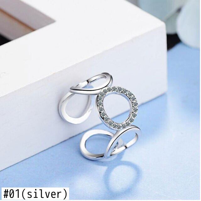 送料無料 シルバーカラートレンディシルバーカラーミニマリストジュエリーシルバー幾何学ラウンドリング、モザイクジルコンオープニングリングS-R219 指輪 銀 アクセサリー AE165542415284813