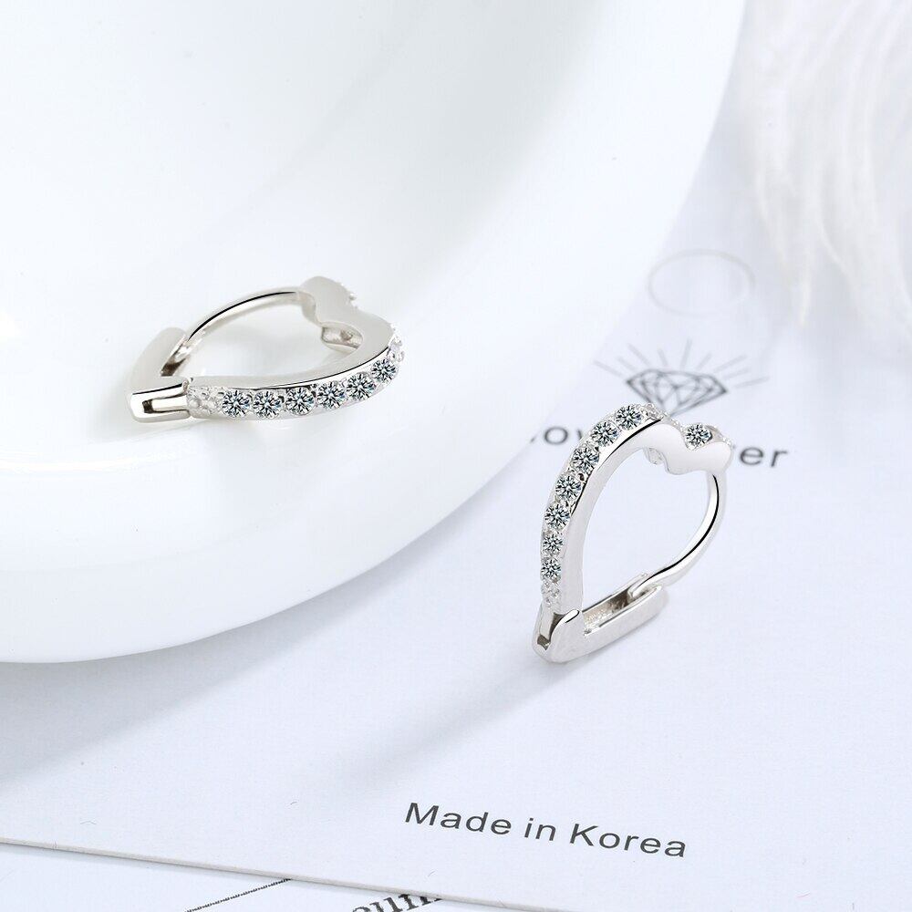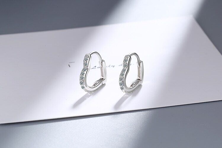 送料無料 ANENJERYシルバーカラーラブハートフープピアススパークリングジルコンピアスレディーススモールピアスパーティーギフトS-E1069 イヤリング 指輪 銀 アクセサリー AE165575189352817