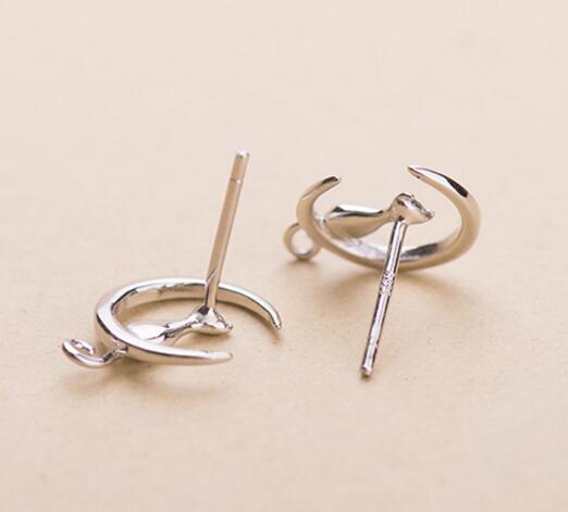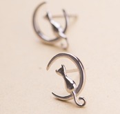 送料無料 ANENJERYシルバーカラー繊細な猫の月のスタッドピアスCuteAnimal耳のジュエリー女性の女の子のギフトS-E123 イヤリング 大人ガーリー スウィート キュート カジュアル 銀 アクセサリー AE165574471633253
