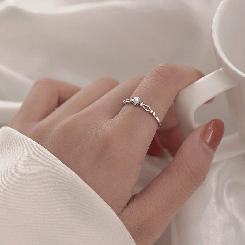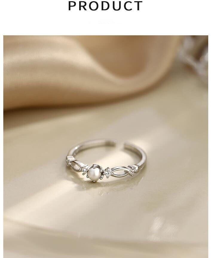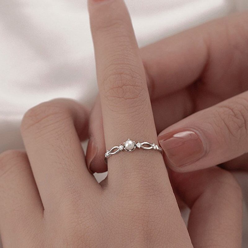 送料無料 ANENJERYシルバーカラーパールジルコンクロスリング可憐で薄いアジャスタブルリング 指輪 真珠 銀 アクセサリー AE16552240407040