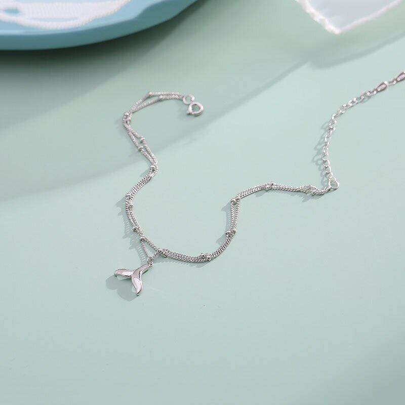 送料無料 ANENJERYシルバーカラージュエリーダブルレイヤーマーメイドテールアンクレットブレスレットフィッシュテールフットアンクレット女性サマーギフトS-B331 夏物 銀 アクセサリー AE165562280435432
