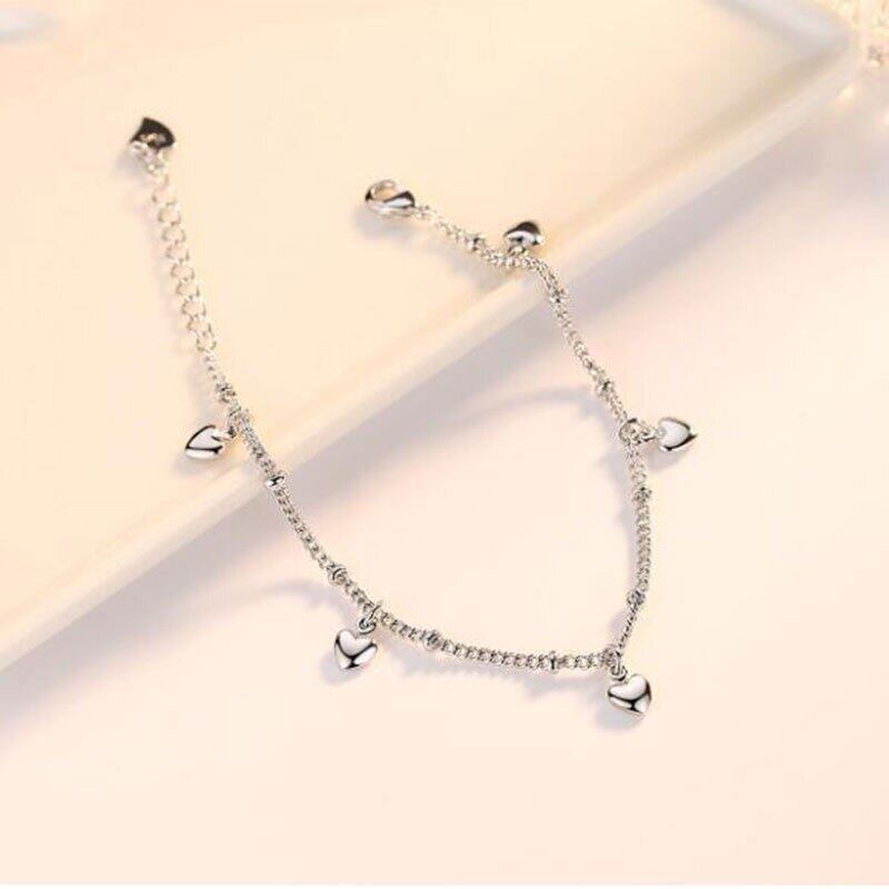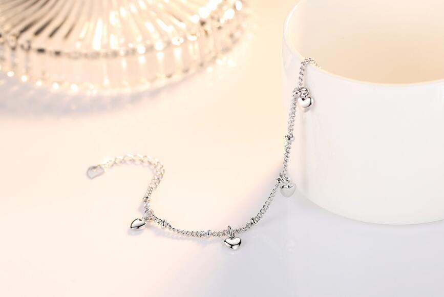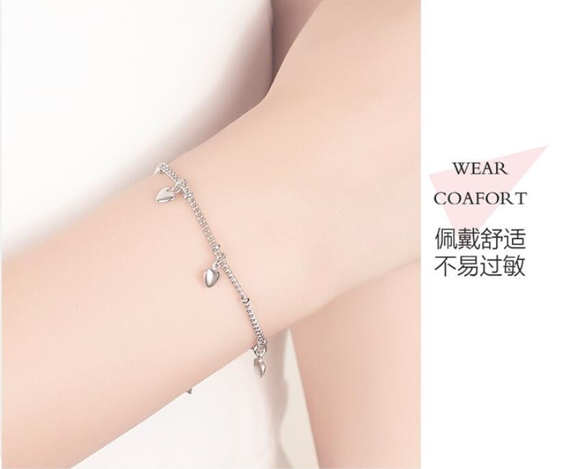 送料無料 ANENJERYシルバーカラー手作りラブハートブレスレット女性ラッキーチェーンブレスレットウェディングジュエリーS-B164 銀 アクセサリー AE165558467077196
