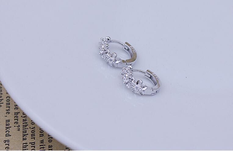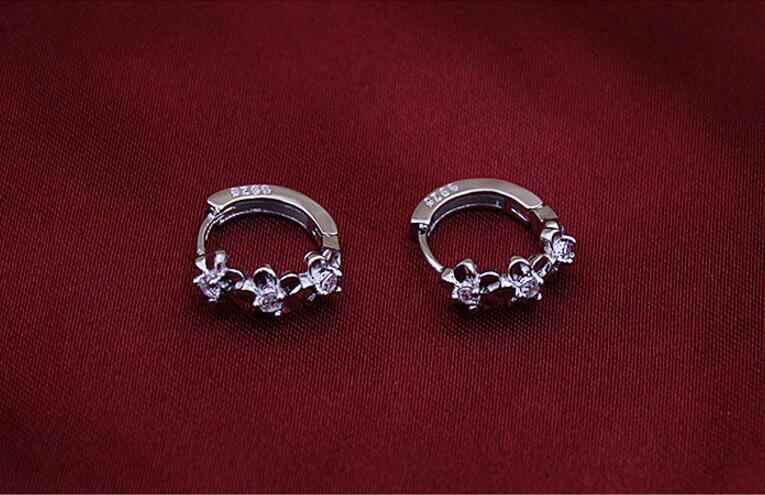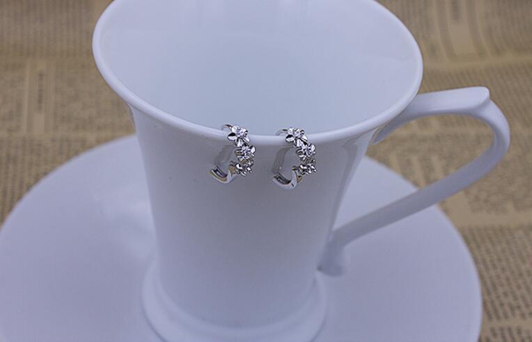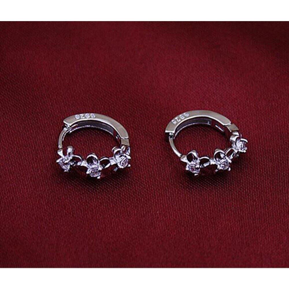 送料無料 ANENJERYシルバーカラースタッカブルフラワーフープピアスキュービックジルコンピアスレディースミニマリストジュエリーS-E13 イヤリング リング 指輪 フラワーデザイン 銀 アクセサリー AE165590837346591