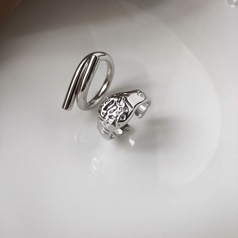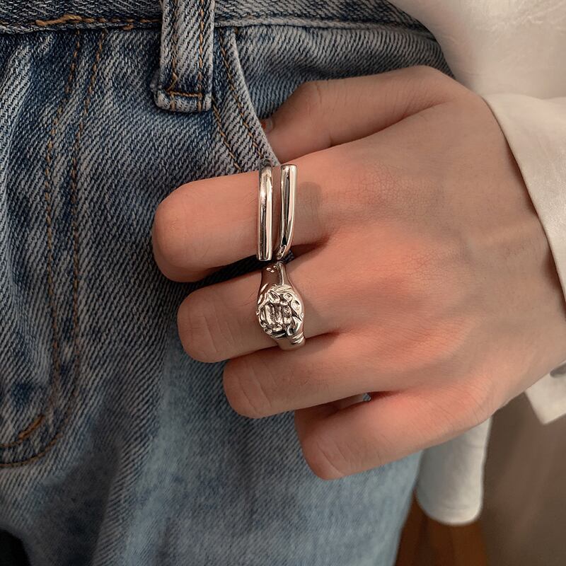 送料無料 ANENJERYシルバーカラー幾何学的な不規則なリング女性男性ゴールドファインジュエリー2022 指輪 銀 アクセサリー AE165536421033062