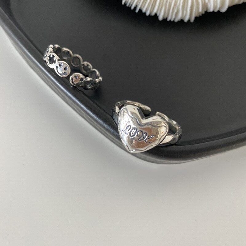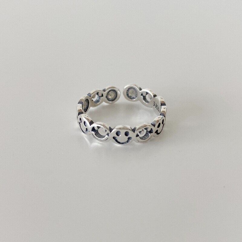 送料無料 ANENJERYシルバーカラーラブハートスマイルフェイスタイシルバーリングヴィンテージオープンフィンガーリングレディースジュエリーギフトS-R749 指輪 銀 ビンテージ アクセサリー AE165571177729562
