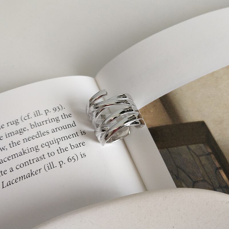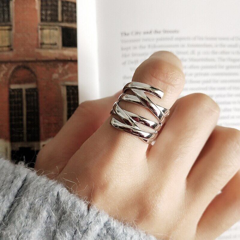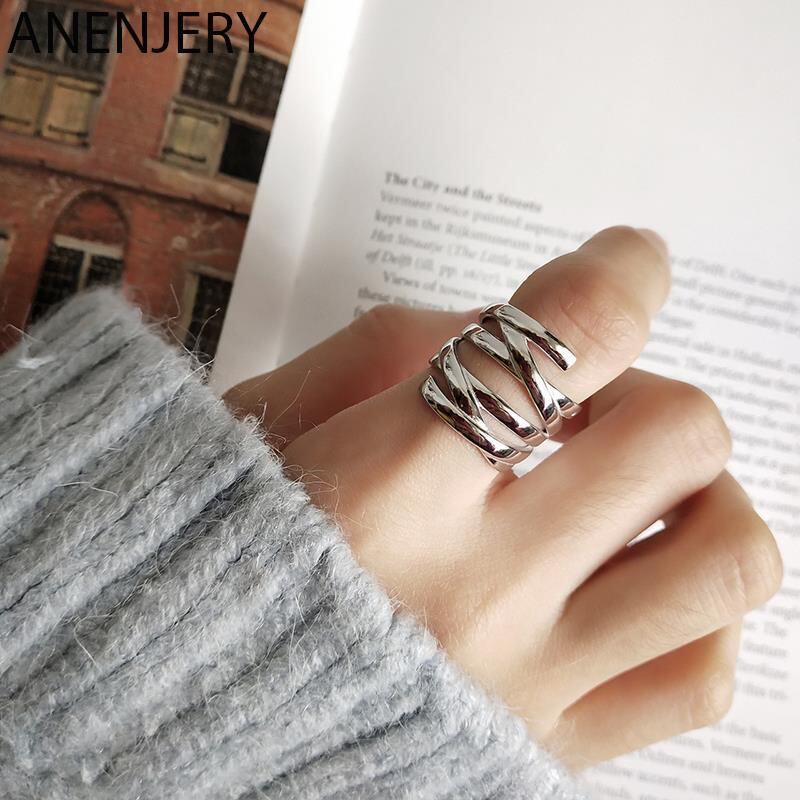 送料無料 ANENJERYシルバーカラーMutil-レイヤーライン編みリングオープンフィンガーリング女性気質パーティージュエリーS-R748 指輪 銀 アクセサリー AE165527385174907