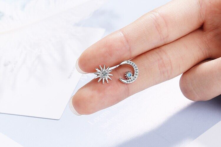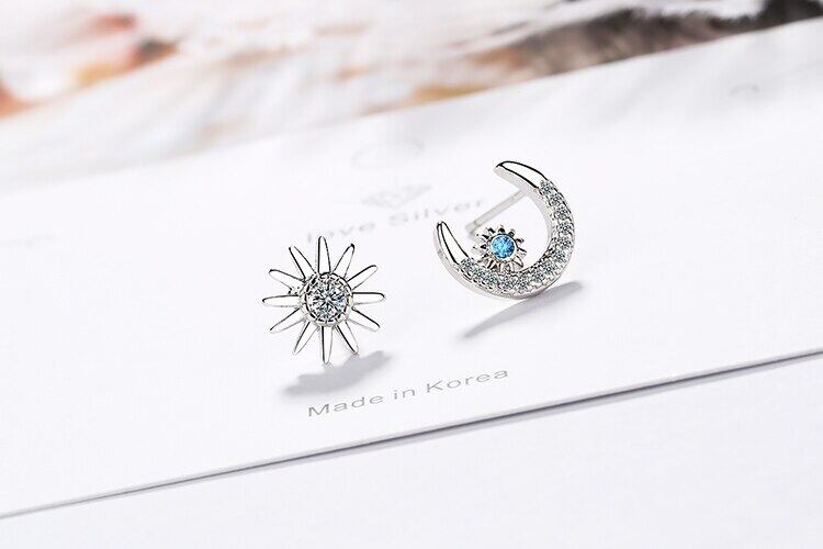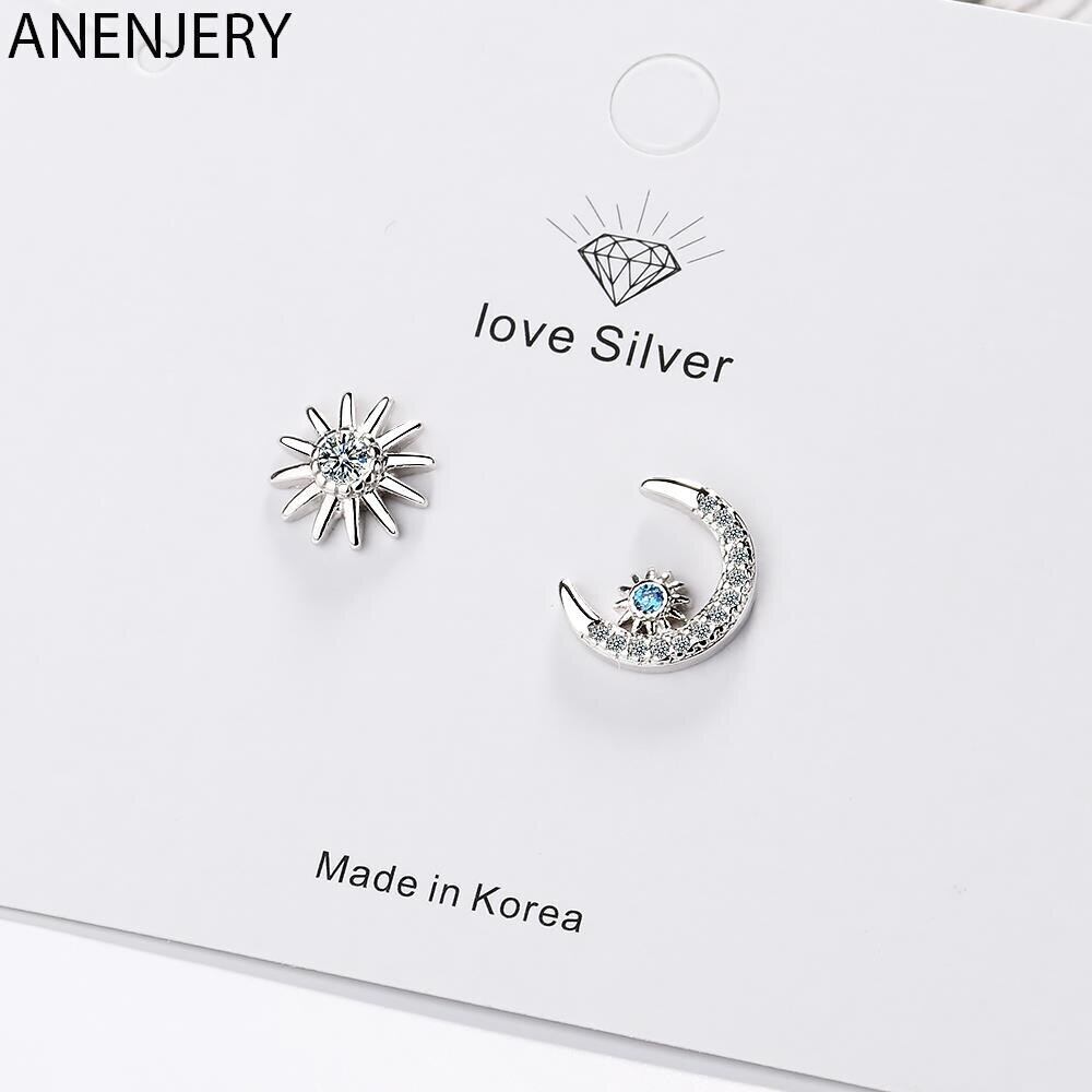送料無料 ANENJERYシルバーカラーロマンティックスタームーンアシンメトリースタッドピアスブルージルコンパーティージュエリー発送S-E884 イヤリング リング 指輪 銀 アクセサリー AE165560761100440