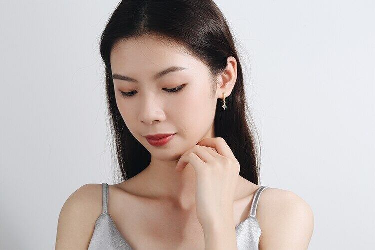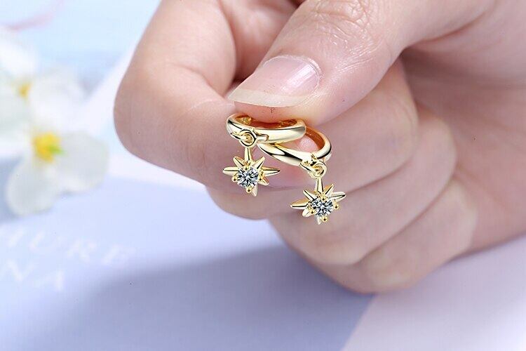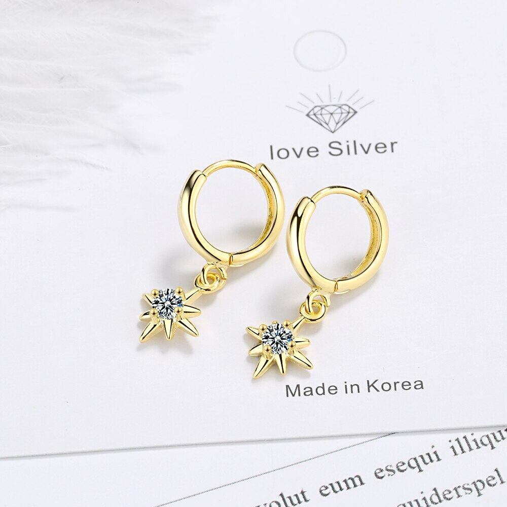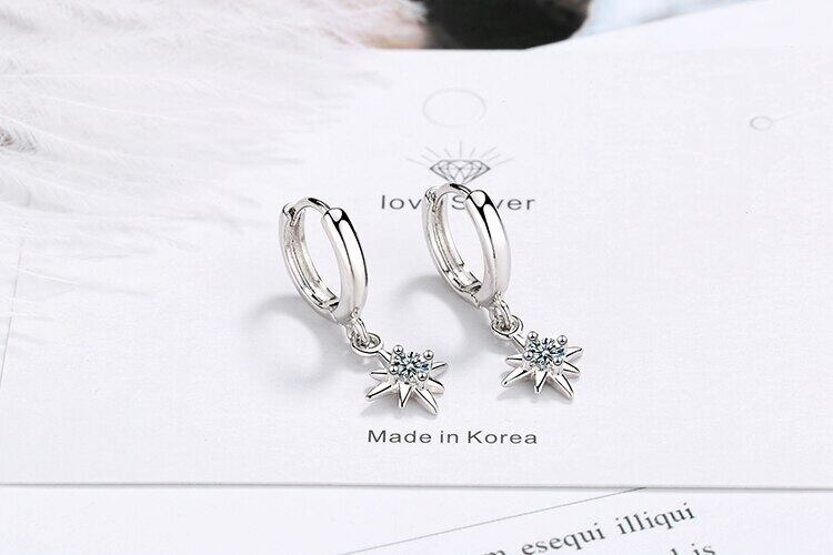 送料無料 ANENJERYシルバーカラースターペンダントイヤリングスパークリングクリアジルコンイヤリング女性ステートメントジュエリーギフトS-E967 指輪 銀 アクセサリー AE16555980292309