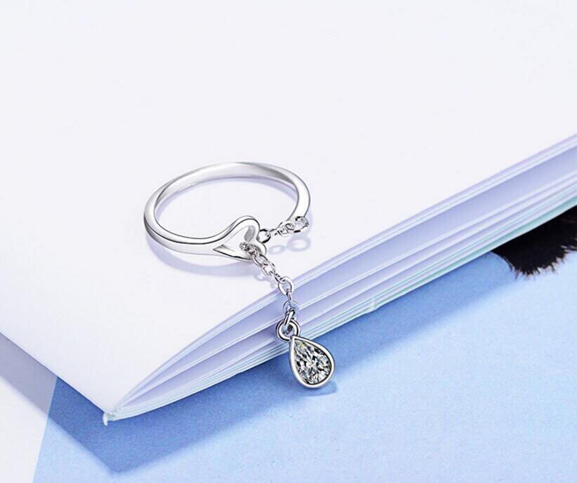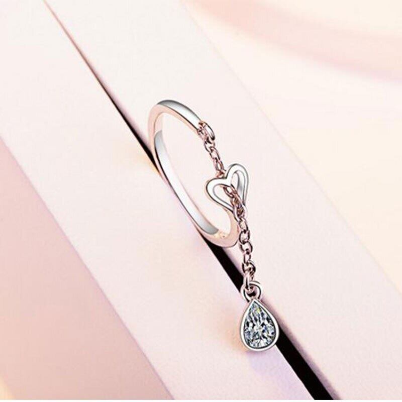 送料無料 ANENJERYシルバーカラートレンディシルバーカラーラブハートリングウォーターペンダントレディースパーティージュエリーギフトS-R234 指輪 銀 アクセサリー AE165563408398145