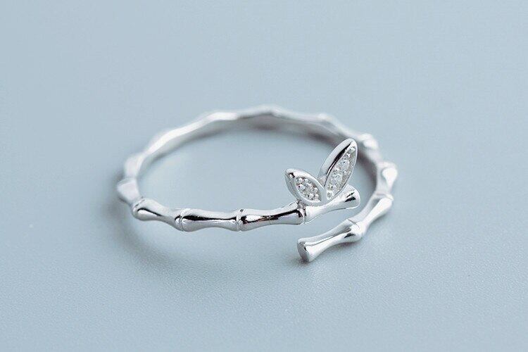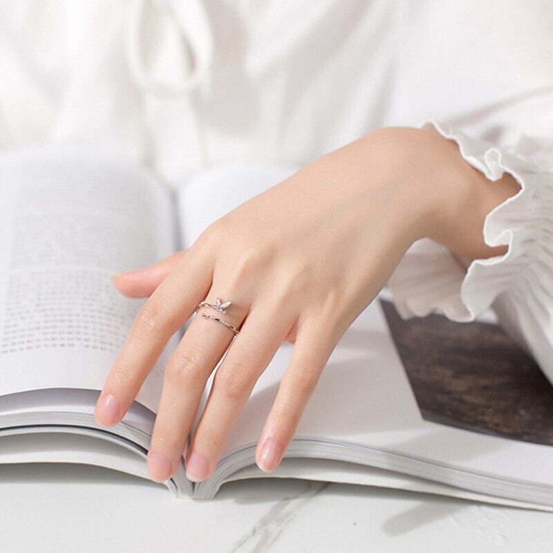 送料無料 ANENJERYシルバーカラーバタフライバンブースラブジルコンオープニングリングトレンディリングジュエリーレディースアクセサリーS-R525 指輪 銀 アクセサリー AE165595146321761