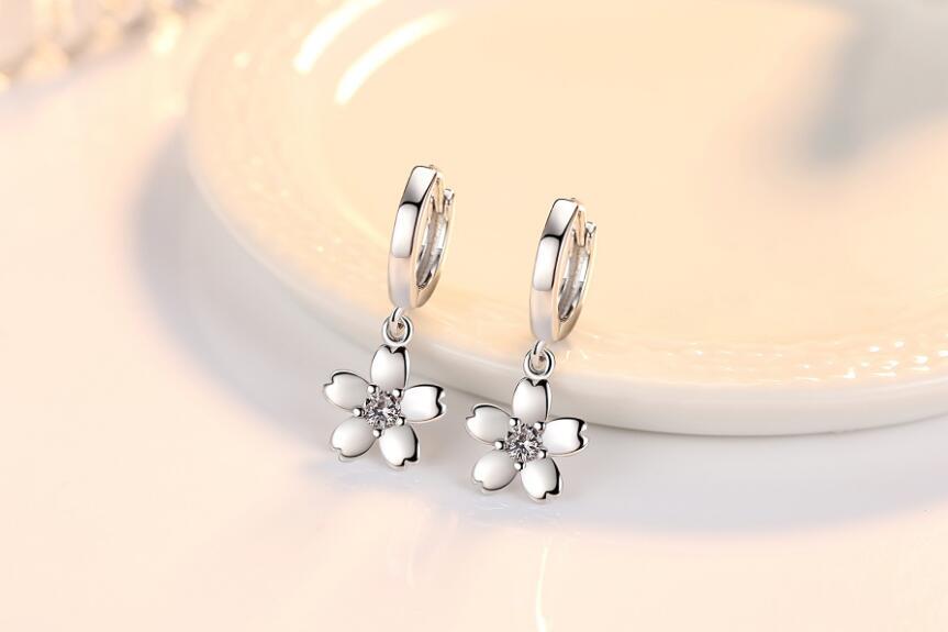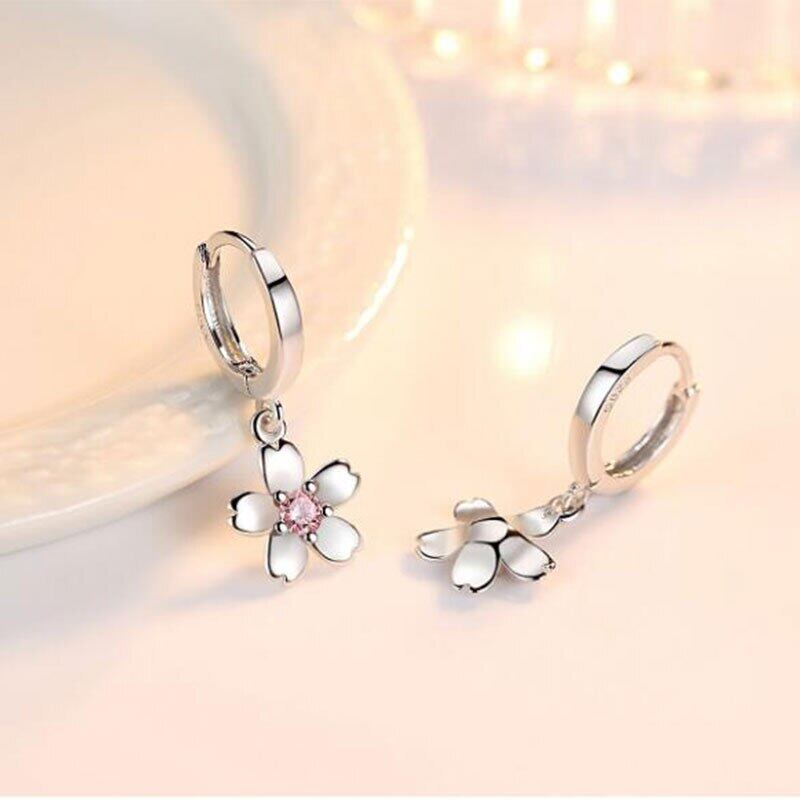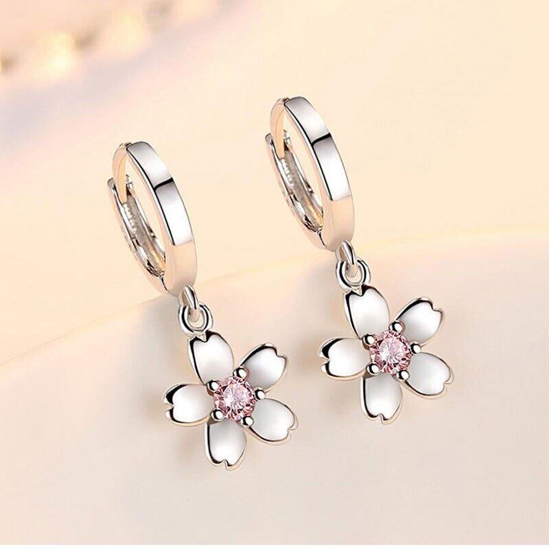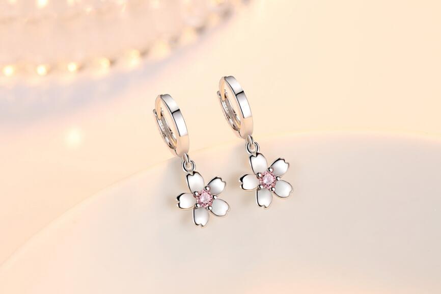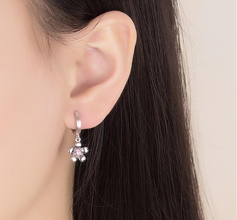 送料無料 ANENJERYシルバーカラースウィートチェリーブロッサムシェイプダングルピアスピンクジルコン装飾イヤージュエリーレディースS-E451 イヤリング 大人ガーリー キュート カジュアル 銀 アクセサリー AE165595005265535