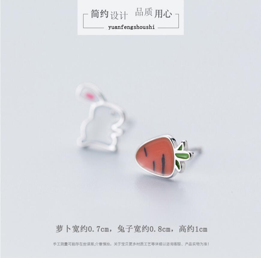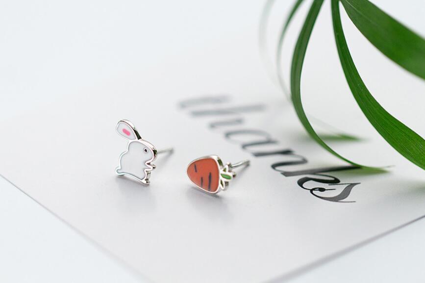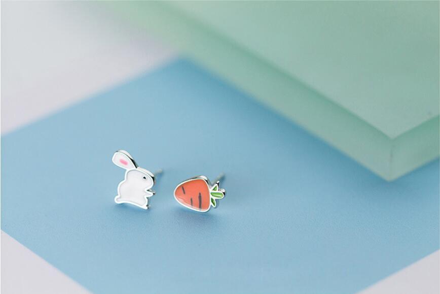 送料無料 ANENJERYシルバーカラーかわいい小さなウサギ大根漫画動物のイヤリング女性の友達の誕生日プレゼントS-E560 大人ガーリー スウィート キュート カジュアル 指輪 銀 アクセサリー AE165541480076713
