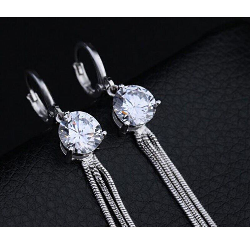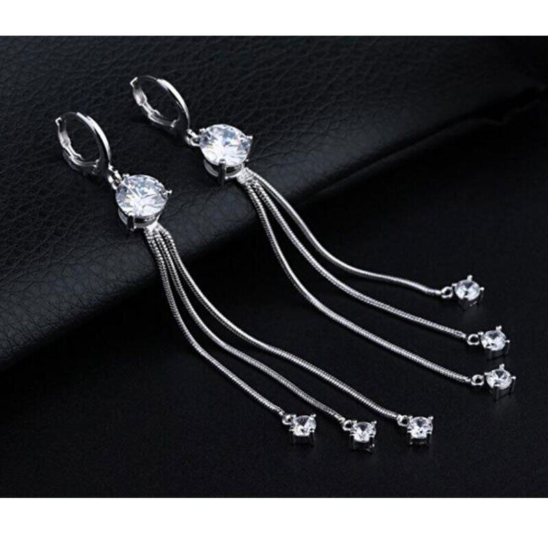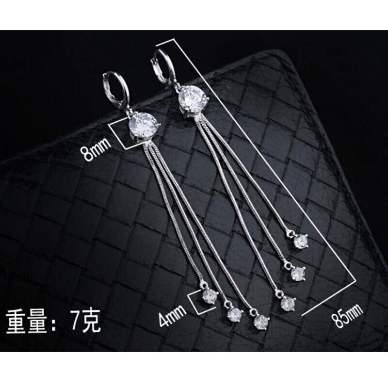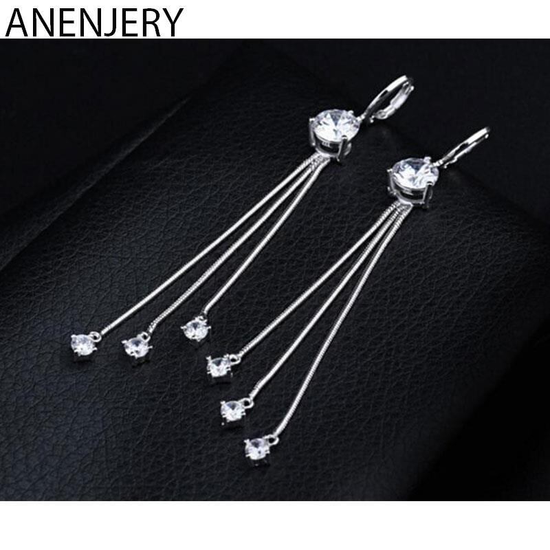 送料無料 ANENJERYシルバーカラーまばゆいばかりのキュービックジルコンロングテルダングルピアスイヤラインイヤリングパーティージュエリーS-E354 指輪 銀 アクセサリー AE165591046400860