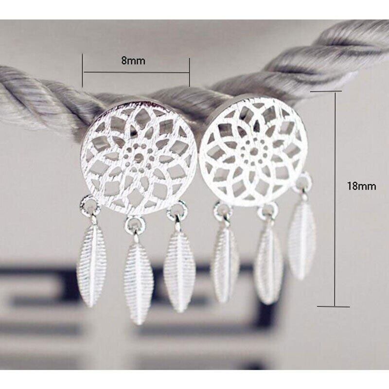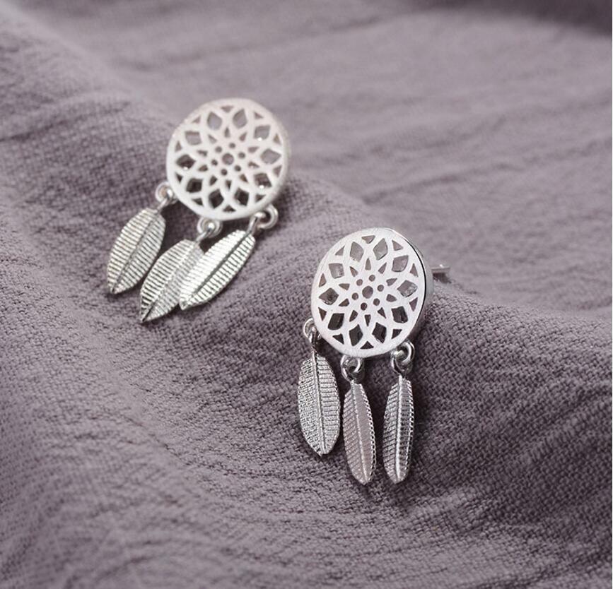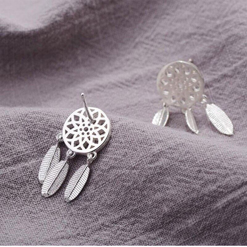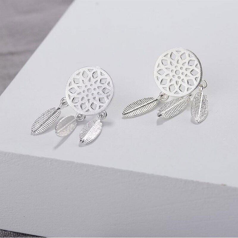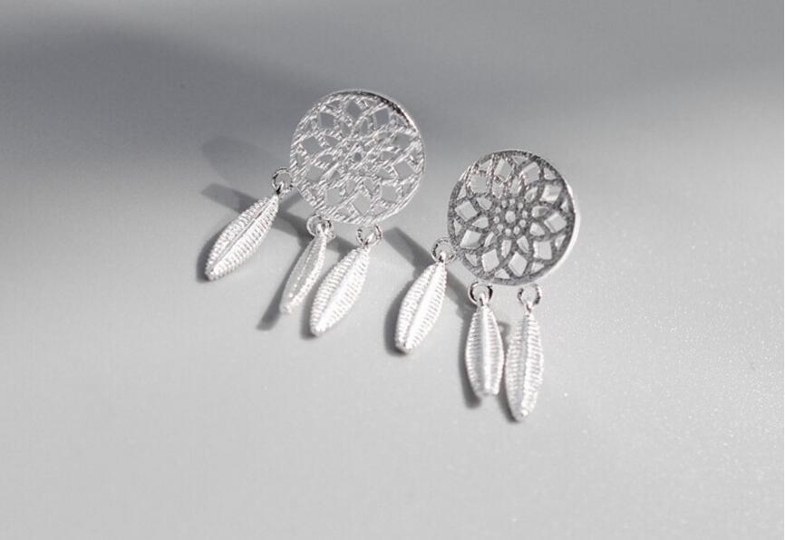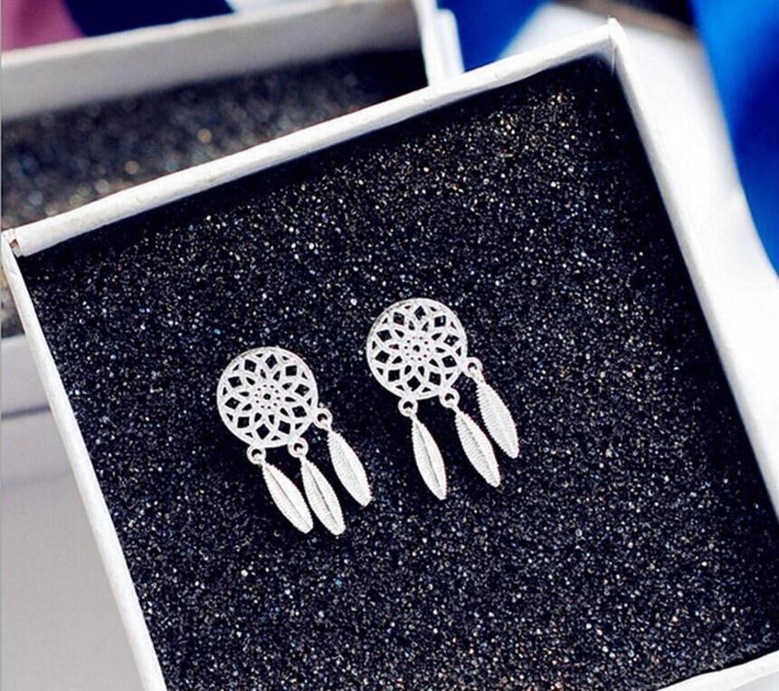 送料無料 ANENJERYシルバーカラーファンタスティックホロウドリームキャッチャーフェザーTelイヤリングジュエリーガールギフトS-E387 銀 アクセサリー AE165561063803078