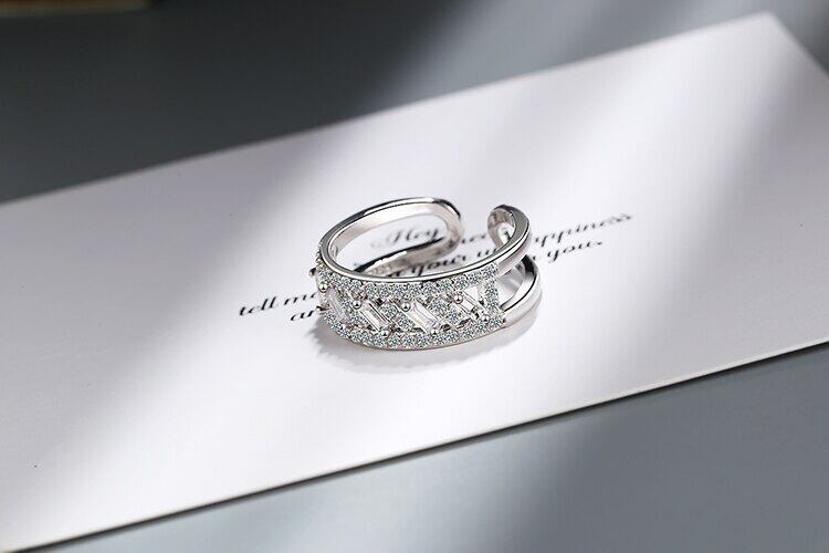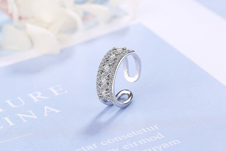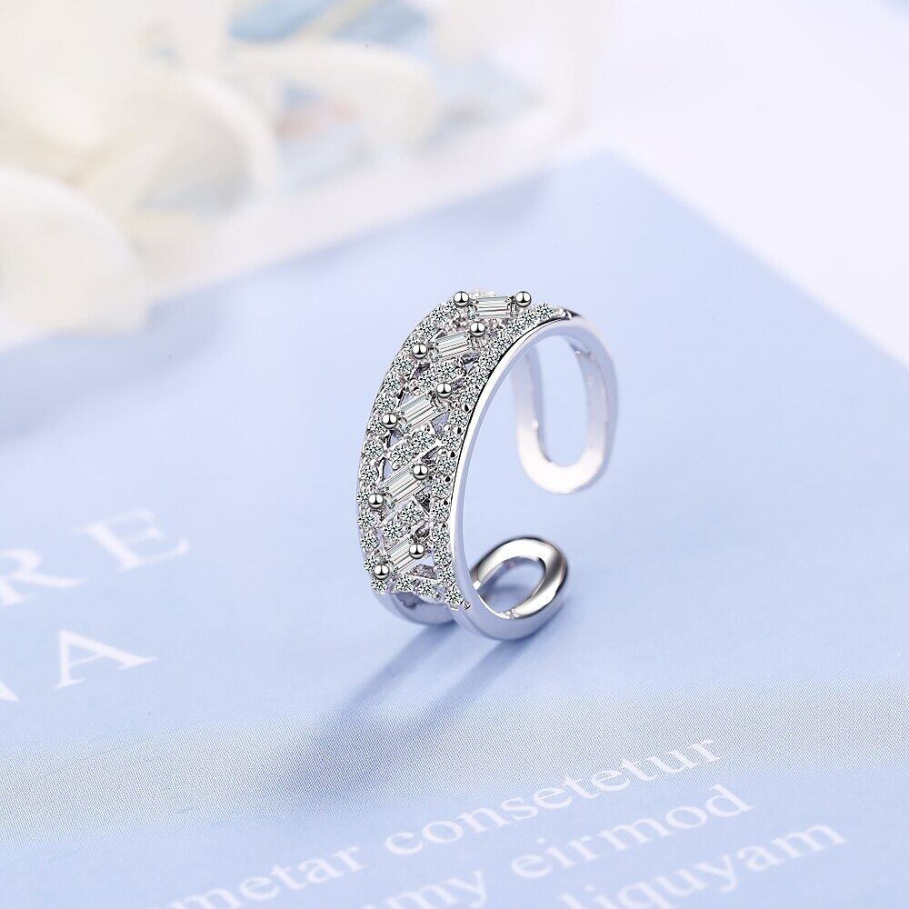 送料無料 ANENJERYシルバーカラーラグジュアリーダブルレイヤージルコンリングウェディングエンゲージリングブライダルジュエリーS-R462 指輪 銀 アクセサリー AE165542960620686