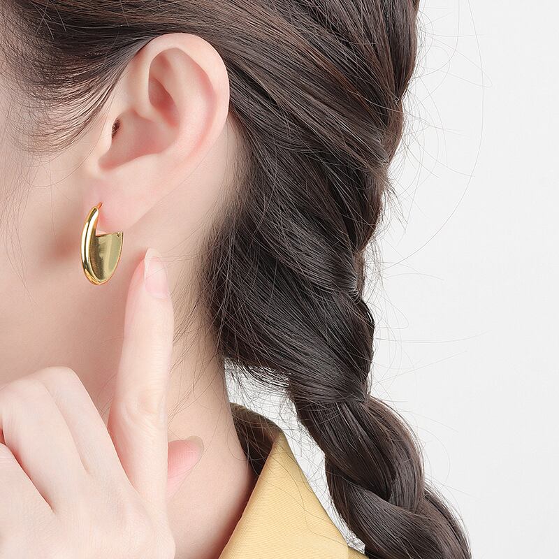 送料無料 ANENJERYシルバーカラーオーバルシェイプフープピアス女性フレンチクリエイティブゴールドシルバーピアスジュエリー2022 イヤリング リング 指輪 銀 アクセサリー AE165553907449260