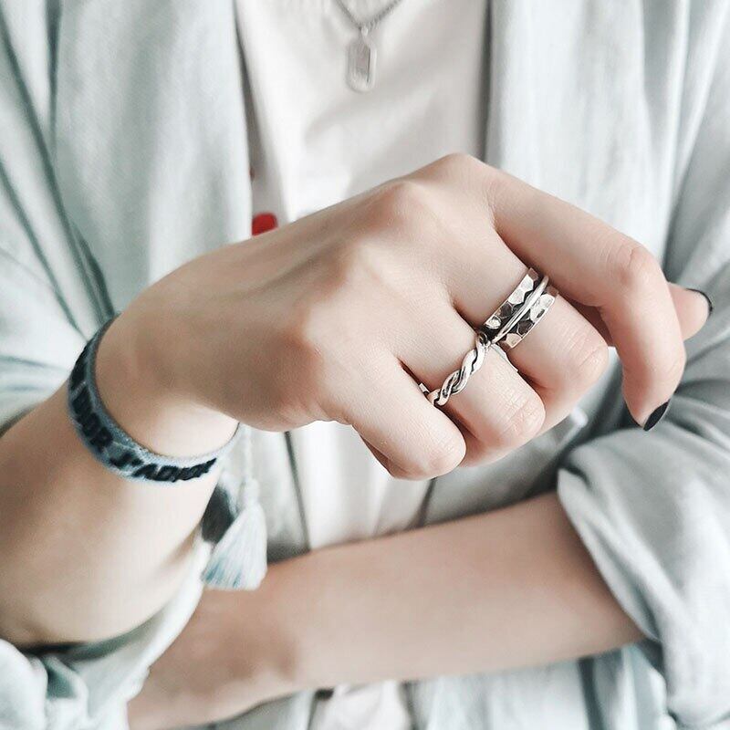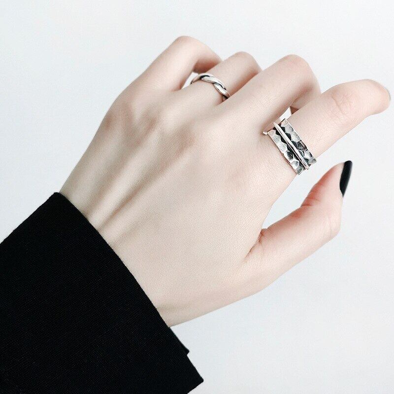 送料無料 ANENJERYシルバーカラー不規則な表面タイシルバーリング幾何学的なオープンリング女性ギフトS-R677 指輪 銀 アクセサリー AE165535061377159