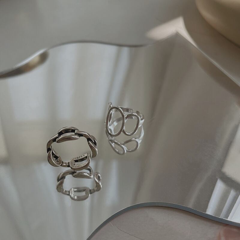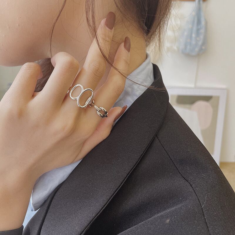 送料無料 ANENJERYシルバーカラー幾何学的タイシルバーリングレディースホローラインチェーンアジャスタブルリングジュエリー 指輪 銀 アクセサリー AE165537133396702