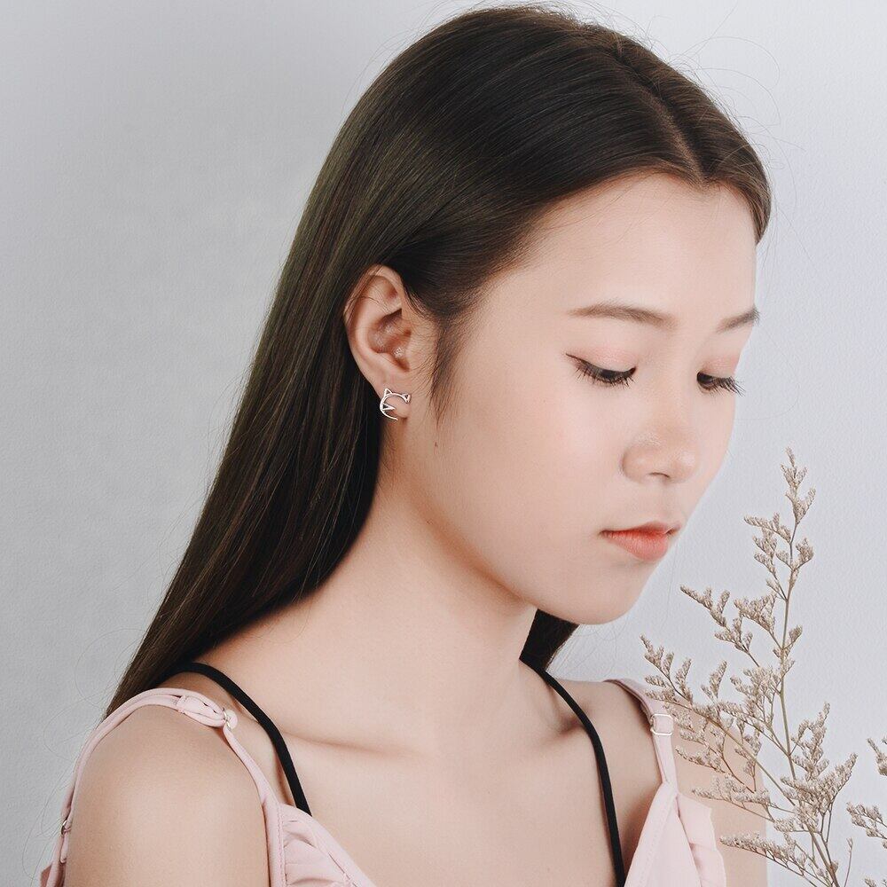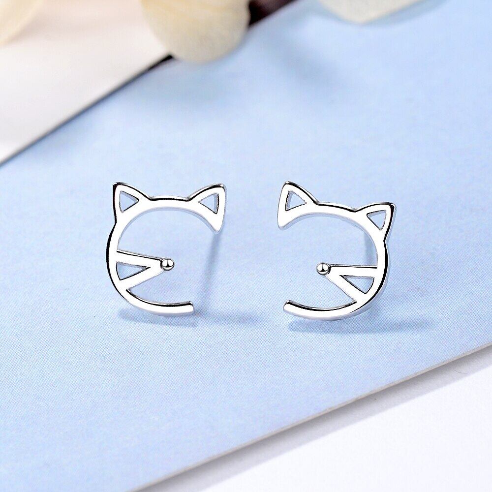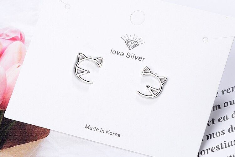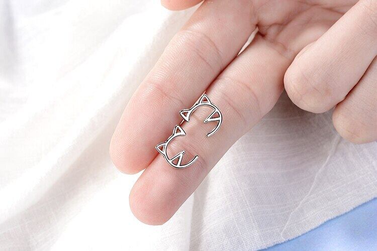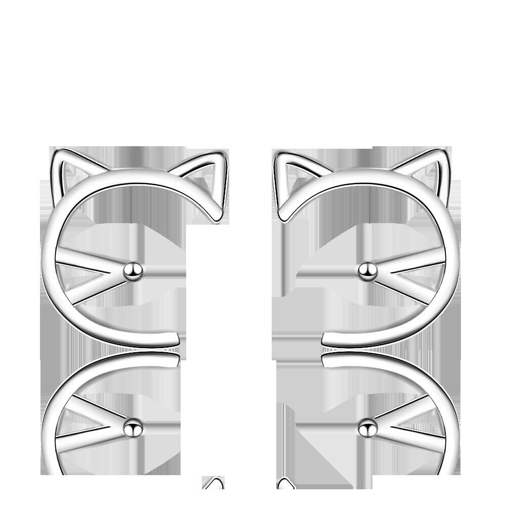 送料無料 ANENJERYシルバーカラーシンプルホローキャットスタッドピアスレディースパーティージュエリーベストギフト彼女S-E671 イヤリング リング 指輪 銀 アクセサリー AE165521044763009