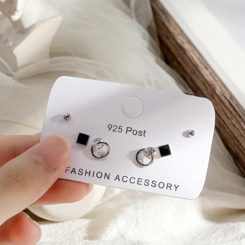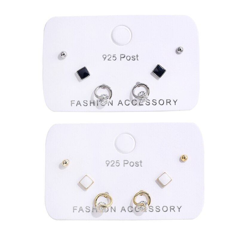 送料無料 シンプルホワイトブラックスクエアラウンドサークルスタッドピアスセットレディースガールズ6ピースピアスセットジュエリーギフトS-E1230 イヤリング リング 指輪 スクウェア アクセサリー AE165583647702102