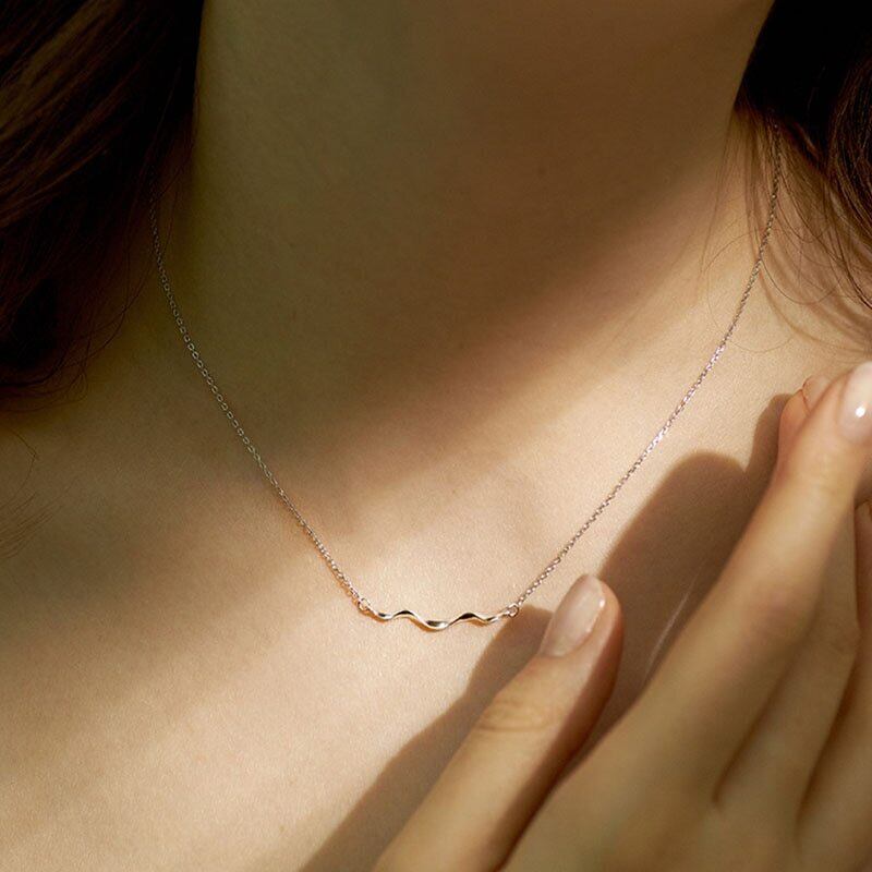 送料無料 ANENJERYシルバーカラー幾何学的波ペンダントネックレス女性女の子ジュエリーギフトS-N465 レース 銀 アクセサリー AE165572781050542