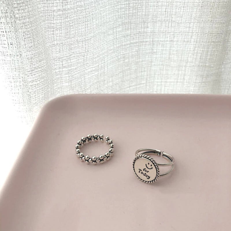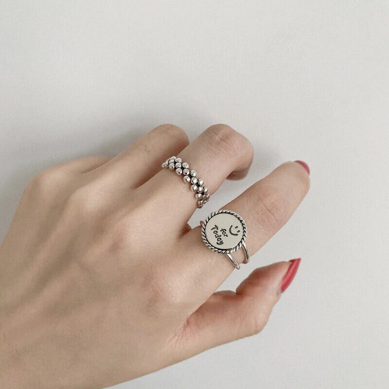 送料無料 シルバーカラーラウンドディスクレタースマイルフェイスタイシルバーリングラウンドボールオープンリングレディースジュエリーギフトS-R791 指輪 銀 アクセサリー AE165524779519612