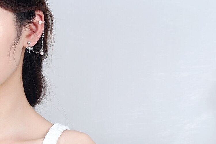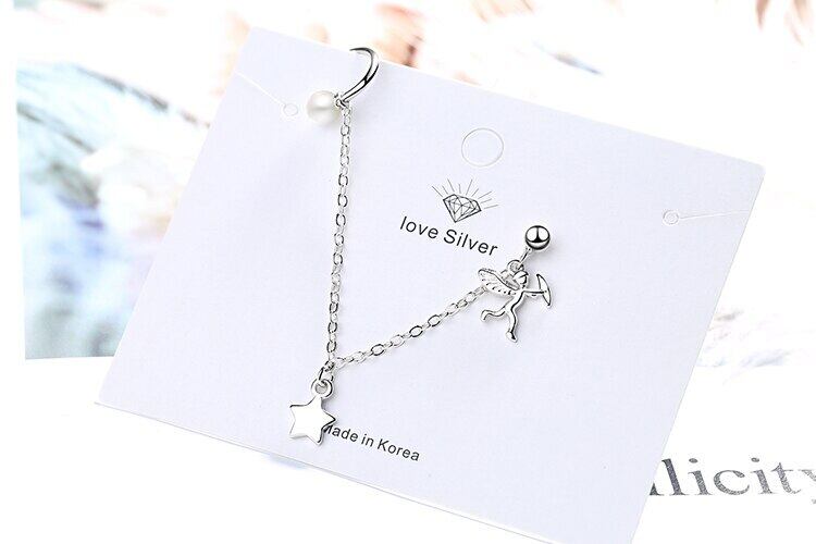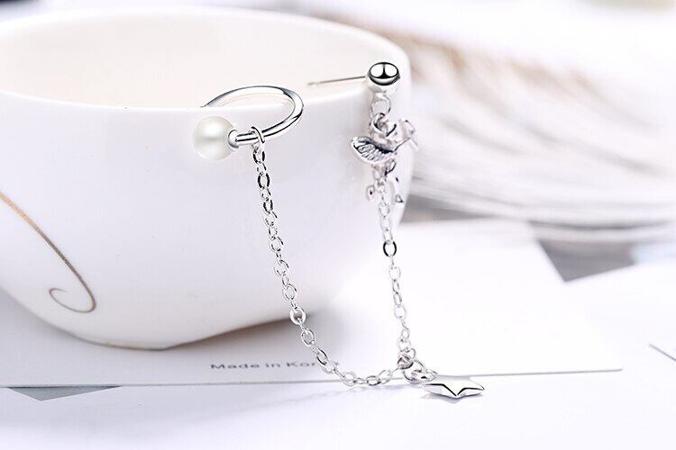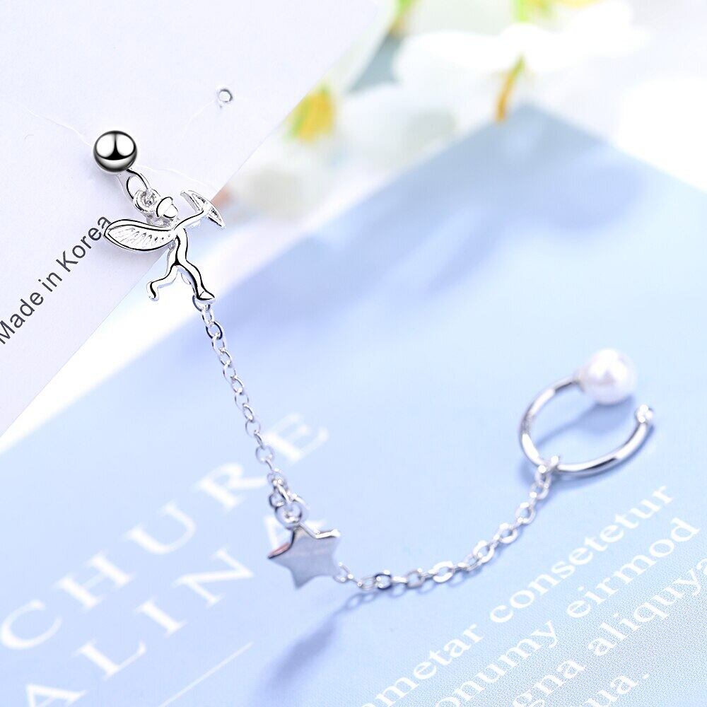 送料無料 ANENJERYシルバーカラー1PCエンジェルスターパールイヤーカフピアスパーソナリティロングテルジュエリーウィメンズパーティーS-E1046 イヤリング 真珠 リング 指輪 銀 アクセサリー AE165531755491058