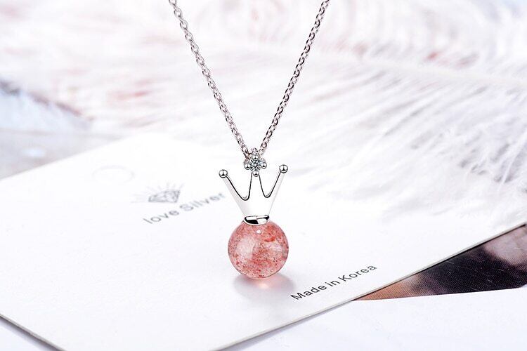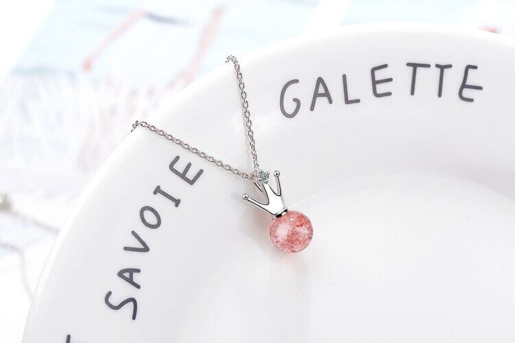 送料無料 ANENJERYシルバーカラーストロベリークリスタルペンダントネックレスクイーンクラウンジルコンネックレスジュエリーベストギフト彼女のS-N349 レース 銀 アクセサリー AE165540936724349