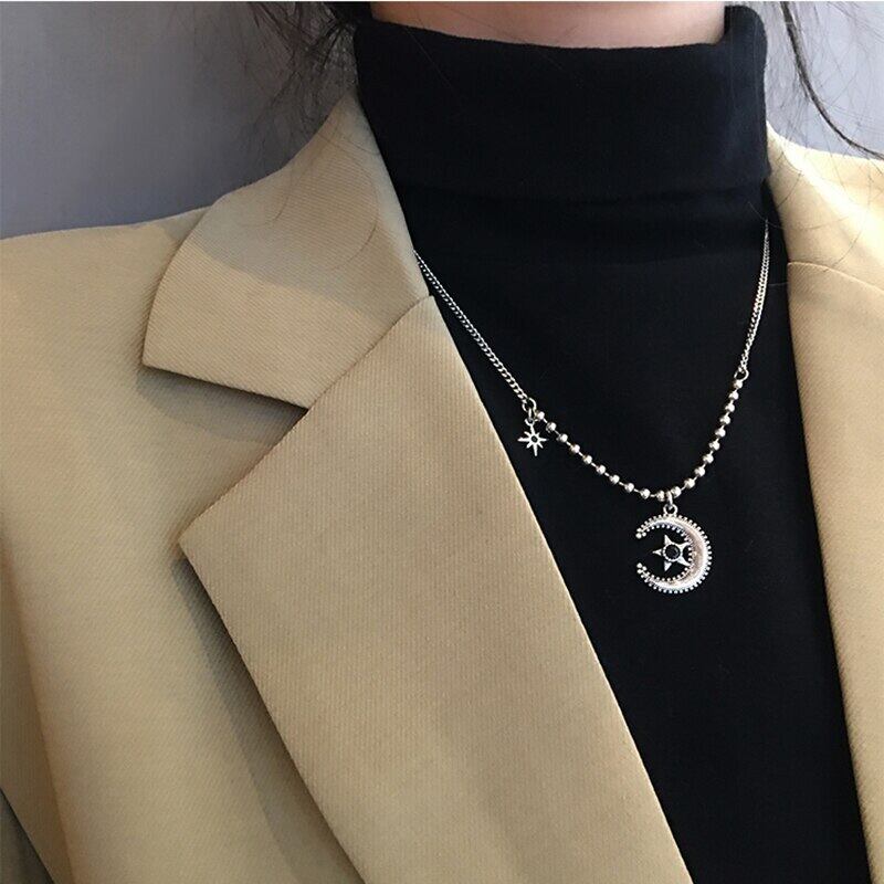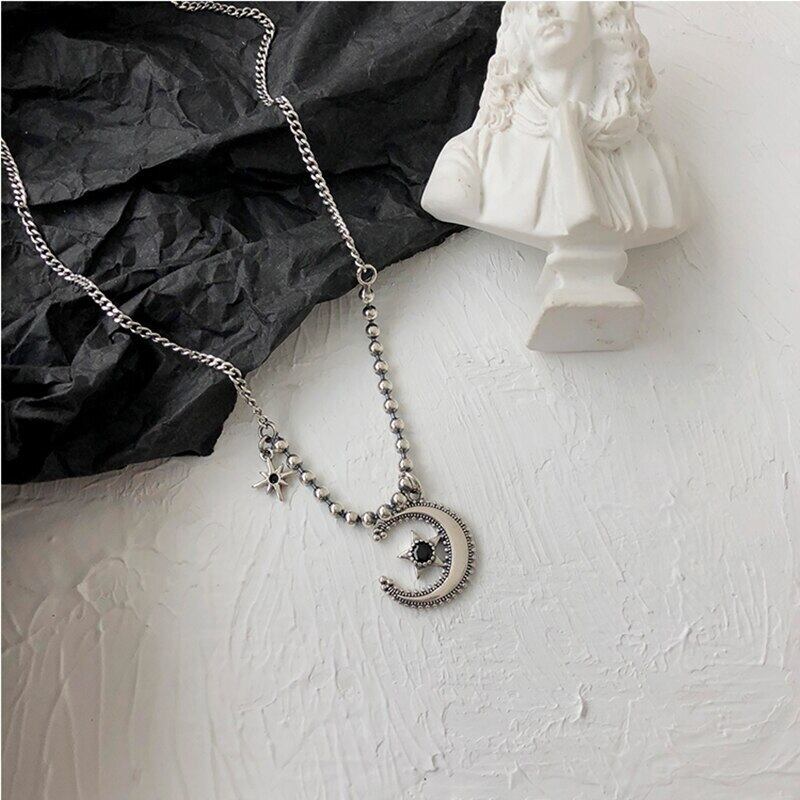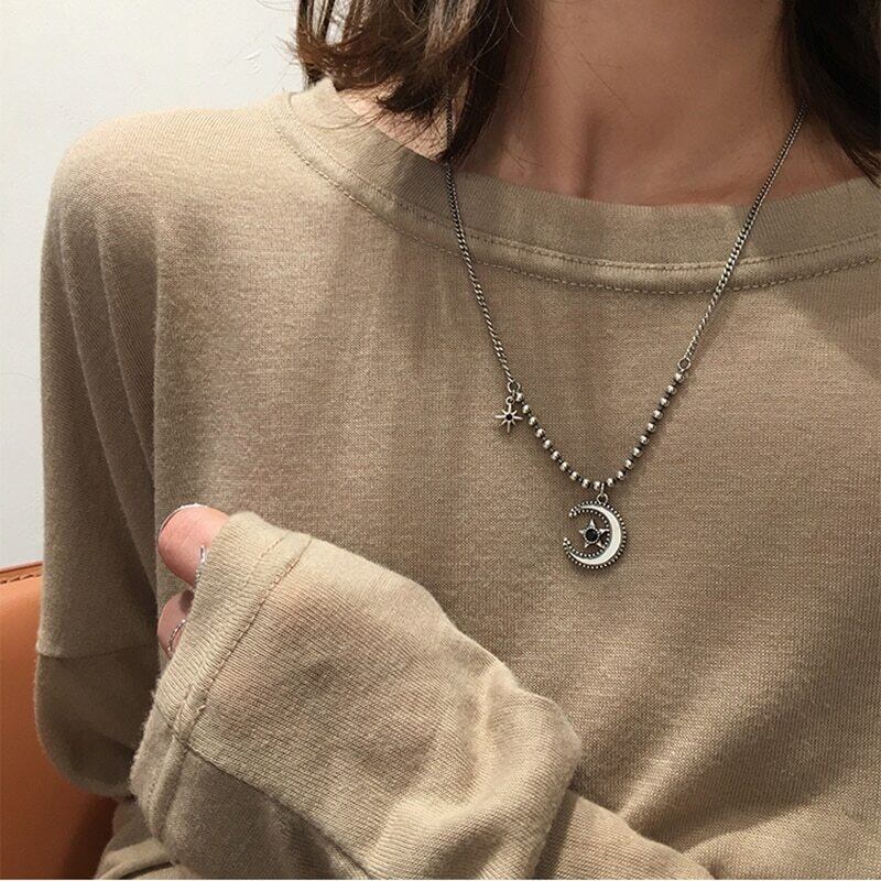 送料無料 ANENJERYシルバーカラーヴィンテージムーンスターチャームネックレスヴィンテージ笑顔顔鎖骨チェーンタイシルバーネックレス女性S-N631 レース 銀 ビンテージ アクセサリー AE165593156562641