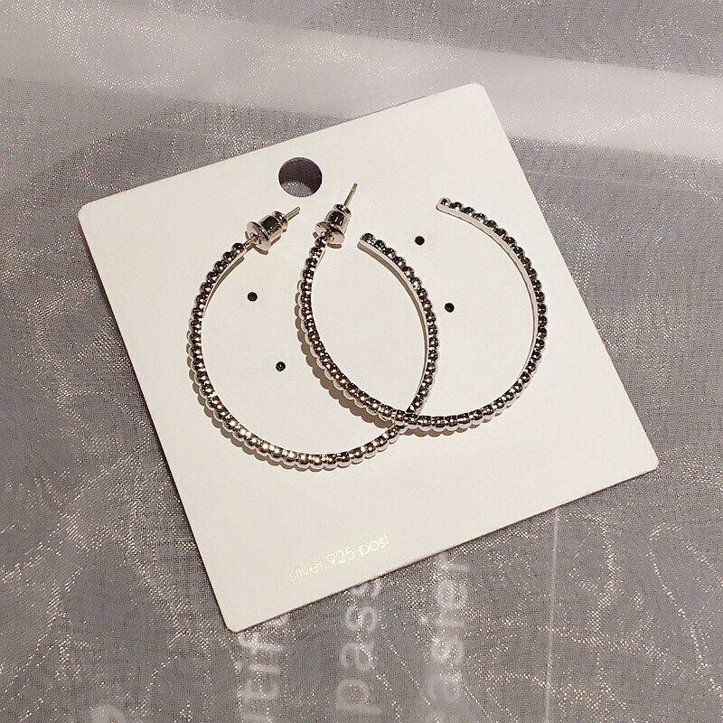 送料無料 ANENJERYシルバーカラーラウンドサークルラージスタッドピアス女性がパーティージュエリーギフトを誇張S-E1187 イヤリング リング 指輪 銀 アクセサリー AE165577465212879