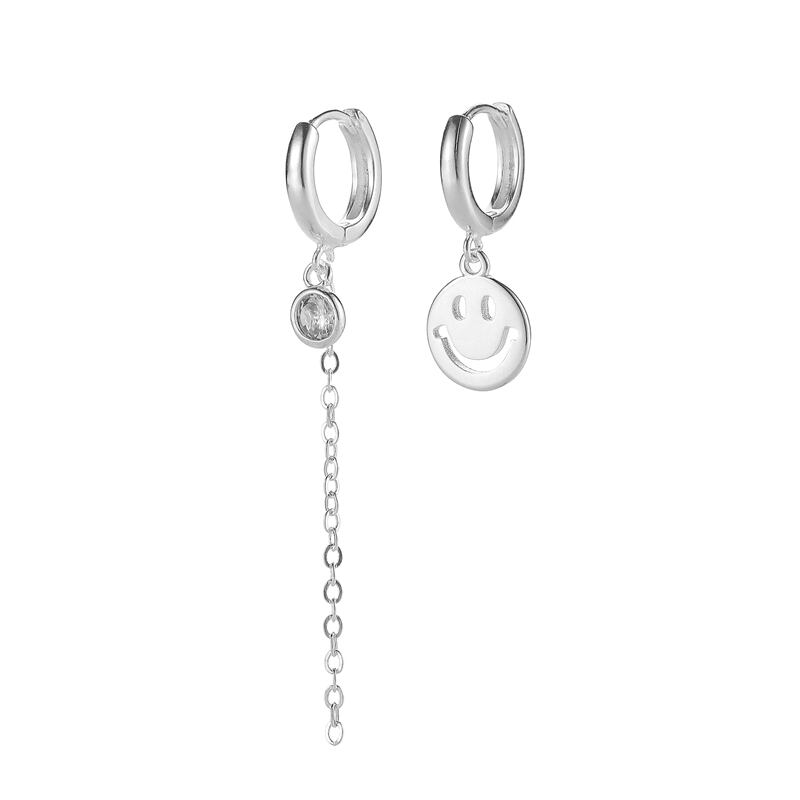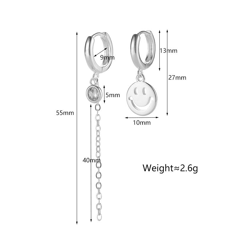 送料無料 ANENJERYシルバーカラー中空笑顔顔非対称フープピアス女性ロングテルチェーンピアスジュエリーギフトS-E1253 イヤリング リング 指輪 銀 アクセサリー AE165513040501953