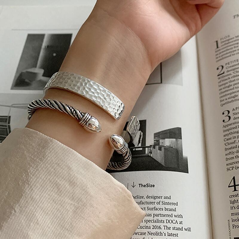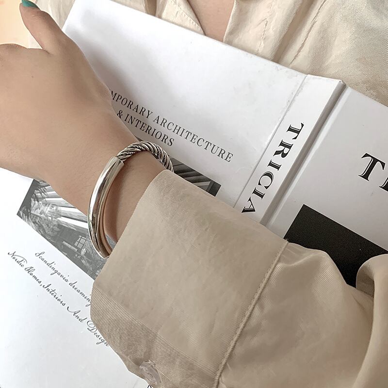 送料無料 ANENJERYシルバーカラーツイストロープバングル女性男性スムースハンドメイドオープンカフバングル調節可能 アジャスタブル 銀 アクセサリー AE165541437866974