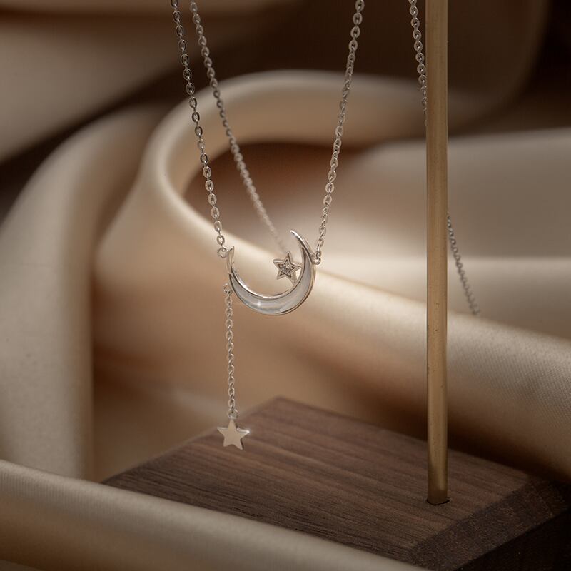 送料無料 ANENJERYシルバーカラームーンスターネックレス女性ロングテルジュエリーギフトS-N704 レース 銀 アクセサリー AE165569490975808
