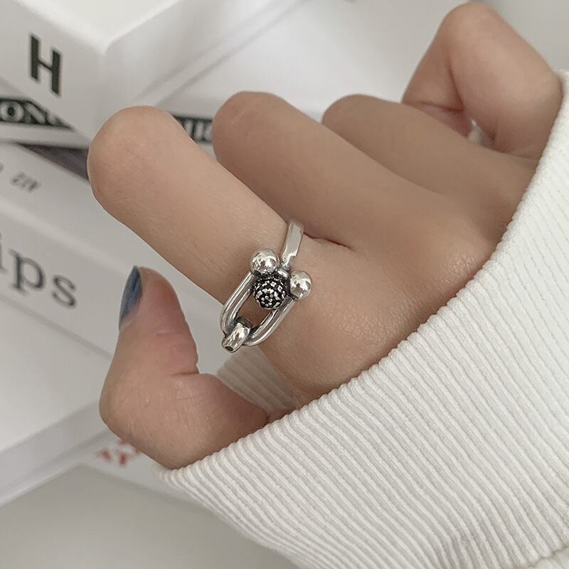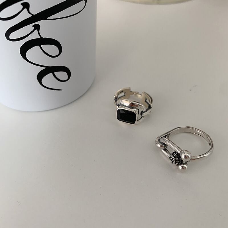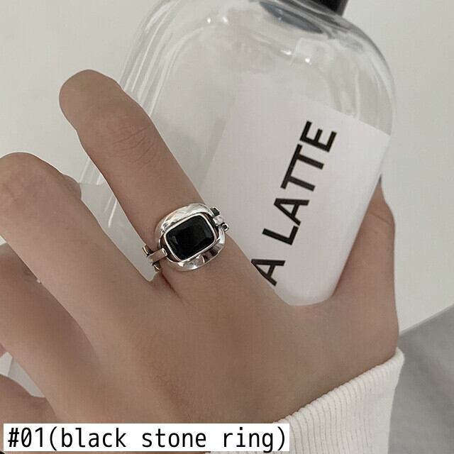送料無料 ANENJERYシルバーカラーU字型フィンガーリング女性男性ヴィンテージブラックストーンオープンリングジュエリーギフト 指輪 銀 ビンテージ アクセサリー AE165535334522612
