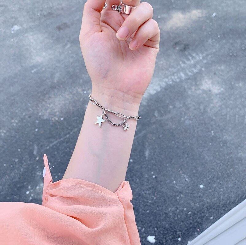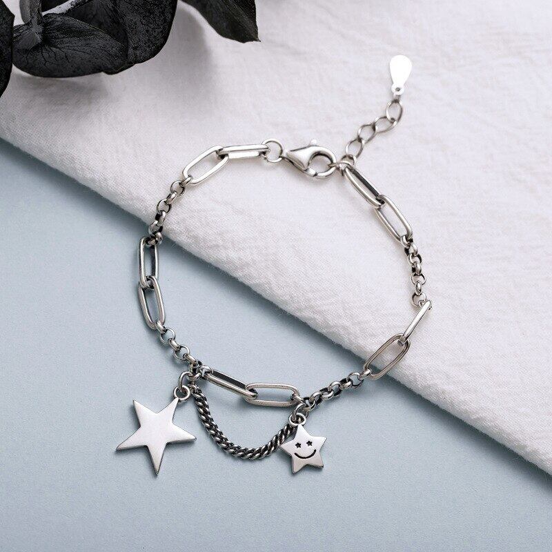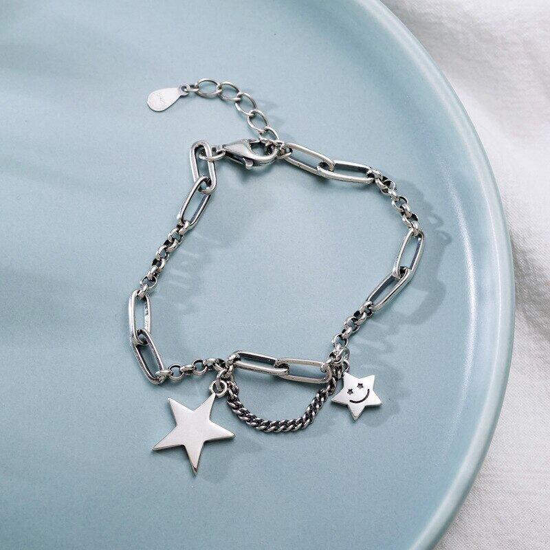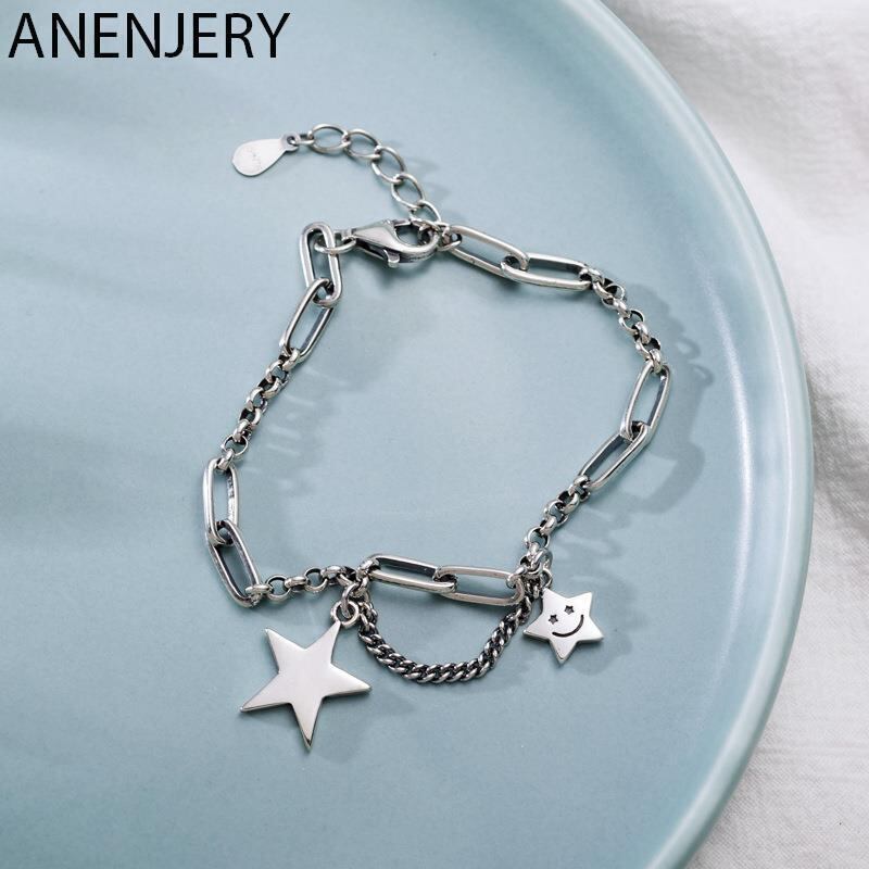 送料無料 ANENJERYシルバーカラースマイルフェイススタータイシルバーブレスレットTelチェーンブレスレットレディースジュエリーギフトS-B381 銀 アクセサリー AE165538702766683