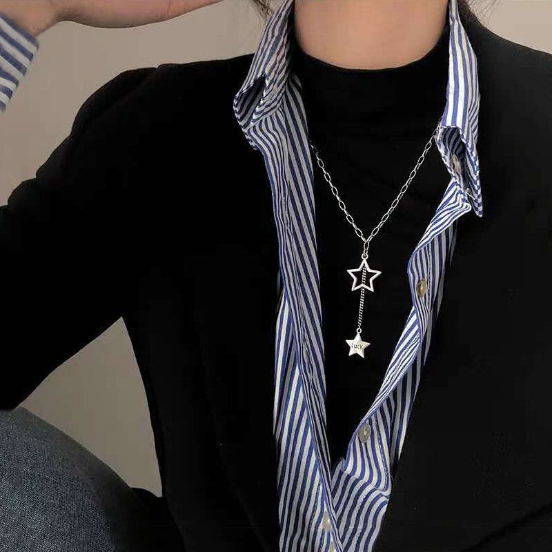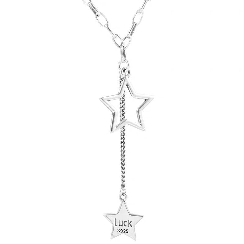 送料無料 ANENJERYシルバーカラーホロウスターラックレターロングネックレスヴィンテージチャームタイシルバーネックレスレディースメンズジュエリー レース 銀 ビンテージ アクセサリー AE165548639410409