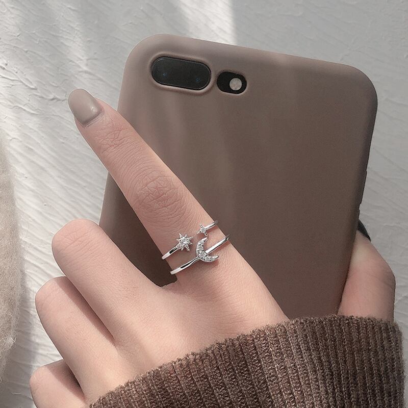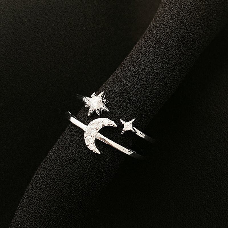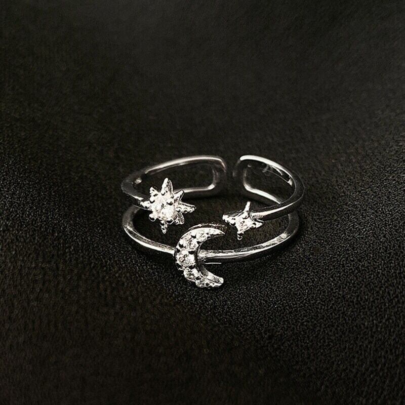 送料無料 ANENJERYシルバーカラースウィートでロマンティックなダブルレイヤースタームーンオープニングフィンガーリングウィメンズウェディングシルバーリングジュエリーS-R798 大人ガーリー キュート カジュアル 指輪 銀 アクセサリー AE16559965032613