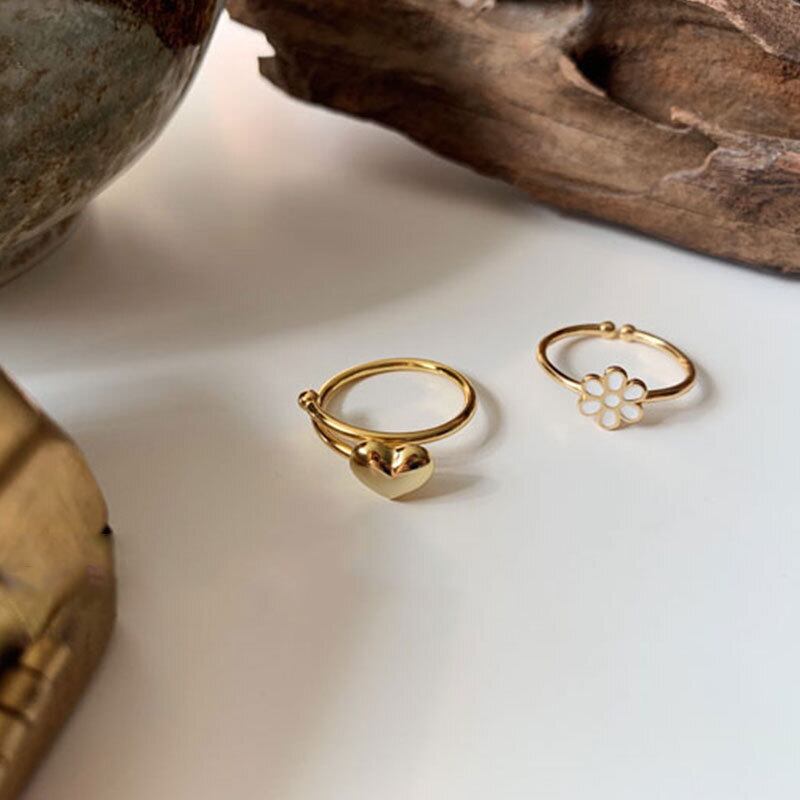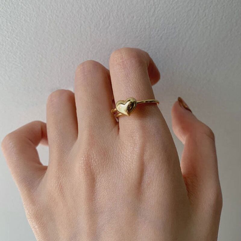 送料無料 ANENJERYシルバーカラーミニマリストゴールドラブハート結婚指輪女性ヤングガールチャイルドギフトアジャスタブルS-R889 リング 銀 アクセサリー AE165513180098278