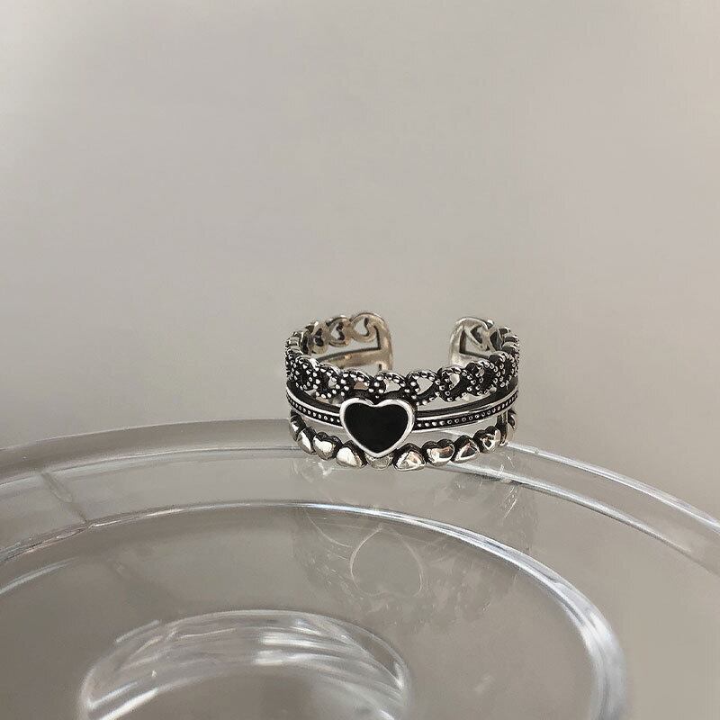送料無料 ANENJERYシルバーカラーマルチレイヤーハートリング女性男性手作りラブハートタイシルバーリングジュエリー 指輪 銀 アクセサリー AE165521003856244