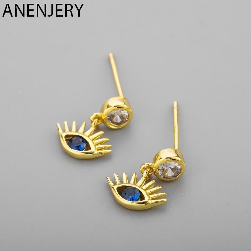 送料無料 ANENJERYシルバーカラーブルーCZアイズスタッドピアスレディースゴールドシルバーパーティージュエリーギフト イヤリング 銀 アクセサリー AE16553248628163
