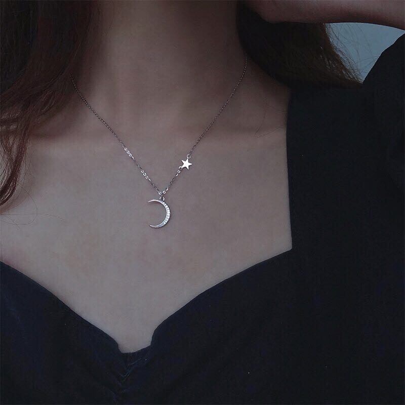 送料無料 シルバーカラー可憐なジュエリームーンスタージルコンチョーカーネックレス女性花嫁クラビクルチェーンネックレスバースデーギフトS-N679 レース 銀 アクセサリー AE165597513829800