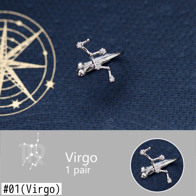 送料無料 ANENJERYシルバーカラー12コンステレーションスタークリップイヤリング女性非アレルギー性イヤリングジュエリーギフトS-E1261 指輪 銀 アクセサリー AE165589740090420