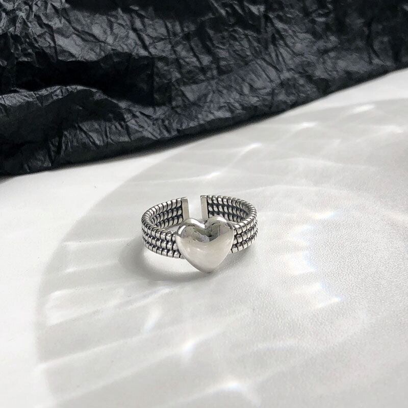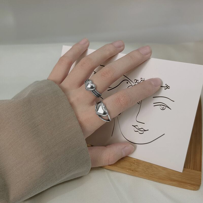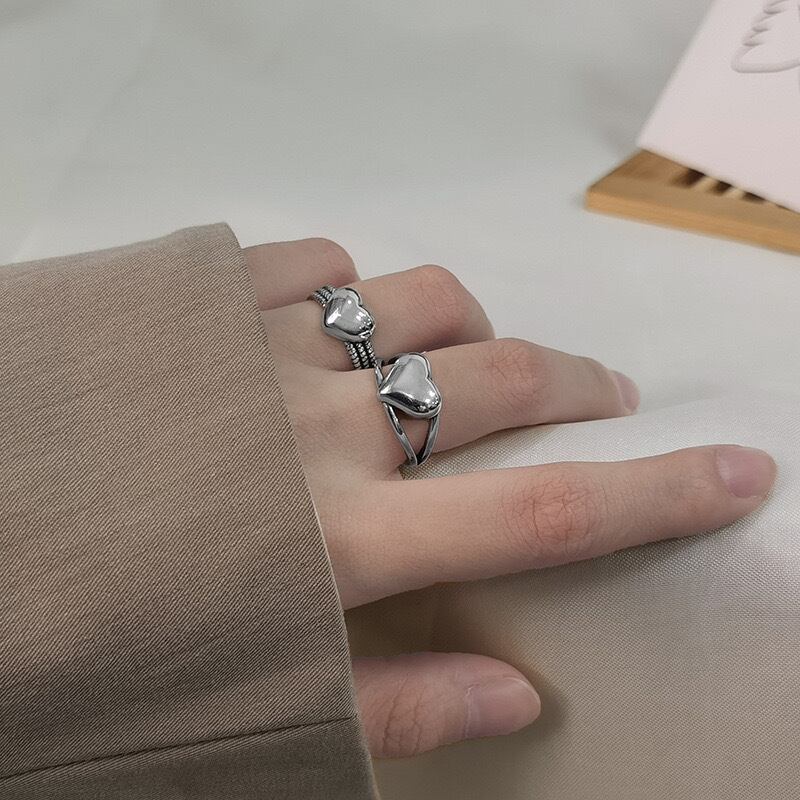 送料無料 ANENJERYシルバーカラースムースラブハートタイシルバーカラーリングレディースヴィンテージパーティージュエリーギフトS-R816 指輪 銀 ビンテージ アクセサリー AE165549138968845